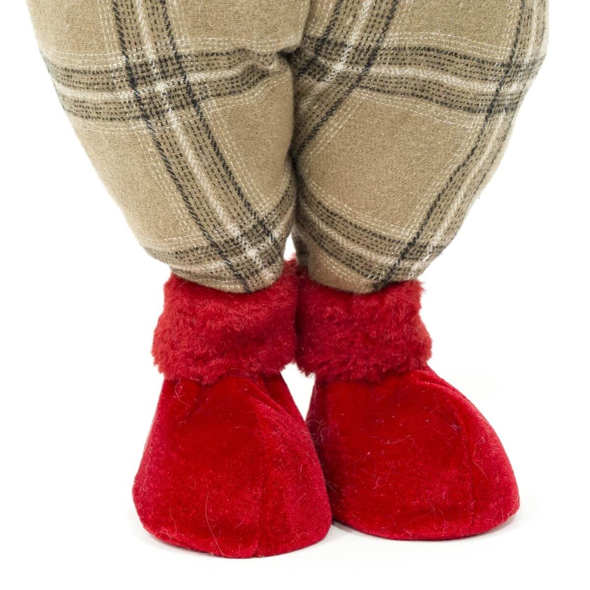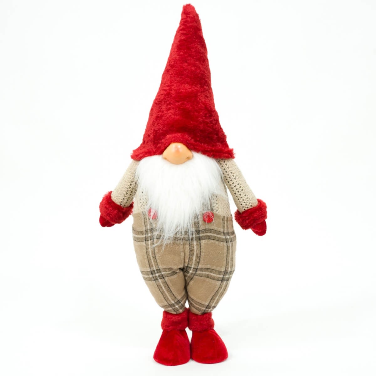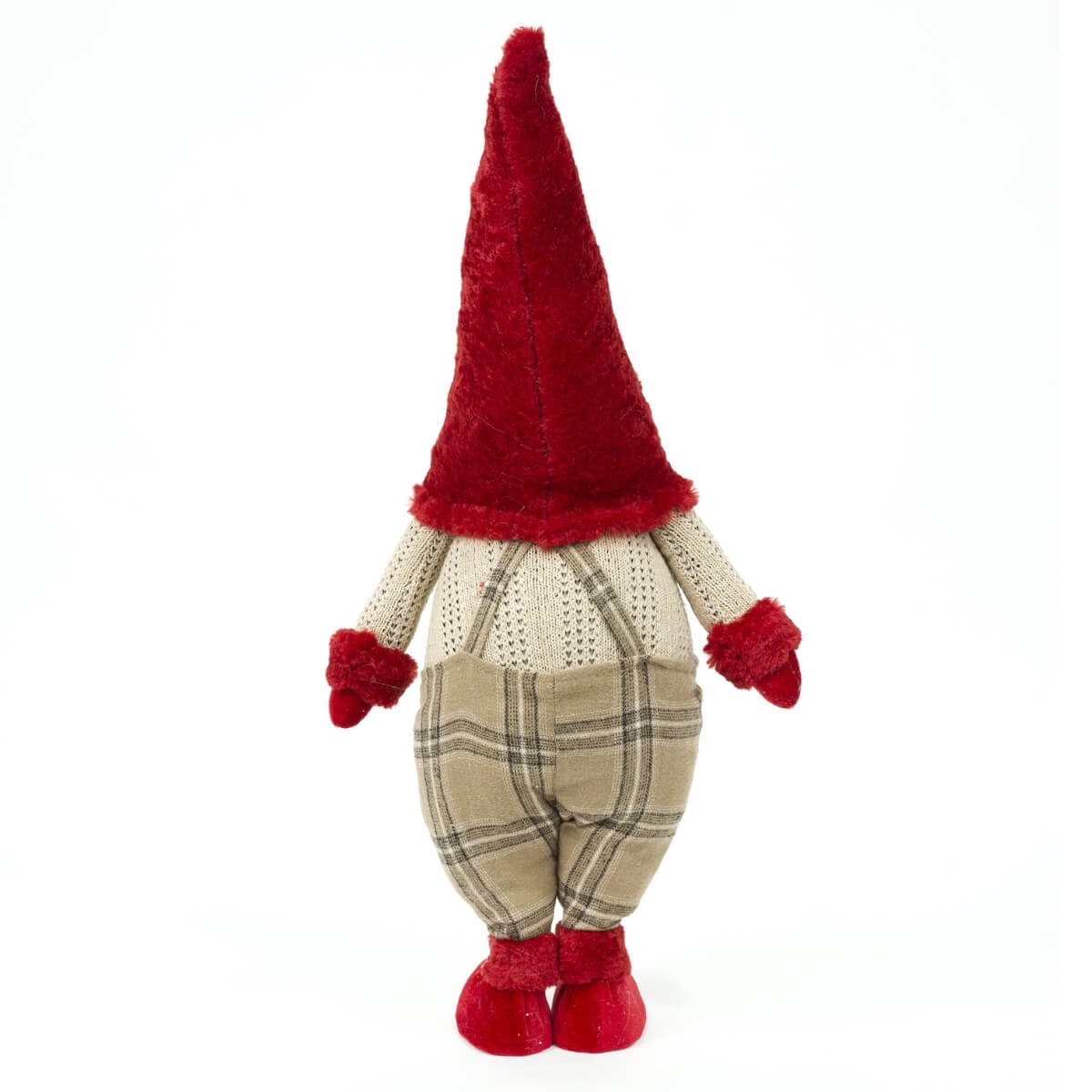 Gnomo Natalizio in Piedi con Cappello Rosso – H.55 cm – Salopette a Quadri Marrone