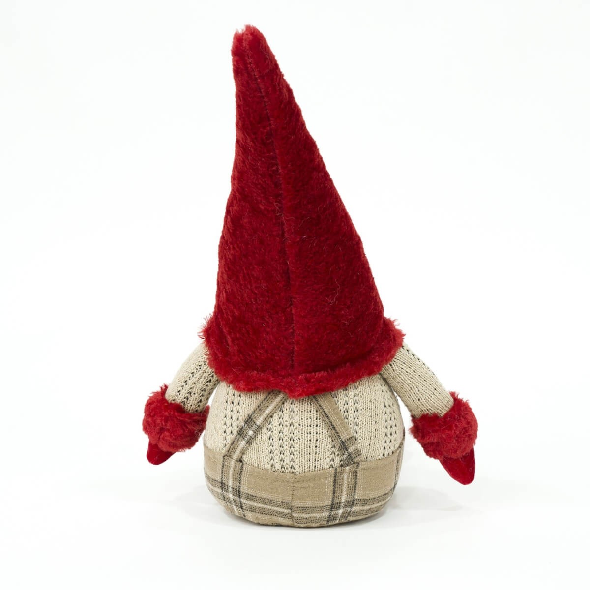 Gnomo Natalizio Seduto con Cappello Rosso – H.57 cm – Salopette a Quadri Marrone