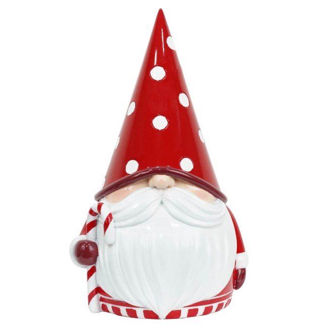 Gnomo natalizio con bastoncino di zucchero e cappello a pois in resina H.41,5 cm – Decorazione bianco e rosso