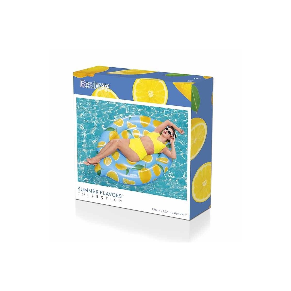 Preparati a un'esperienza frizzante e rinfrescante con il Materassino Gonfiabile Limone Bestway! Con le sue dimensioni generose di 176x122 cm, avrai tutto lo spazio di cui hai bisogno per stenderti comodamente e goderti il sole. La forma del limone aggiunge un tocco di originalità e allegria al tuo momento di relax in acqua. Soddisfa i tuoi sensi con il profumo fresco e delizioso di limone che permea il materassino, creando un'atmosfera unica e piacevole.