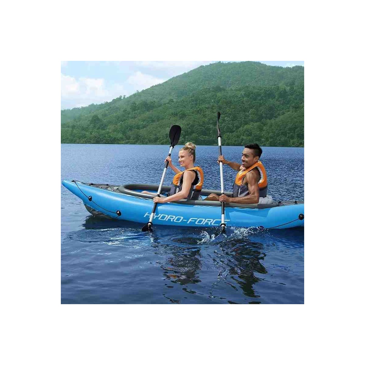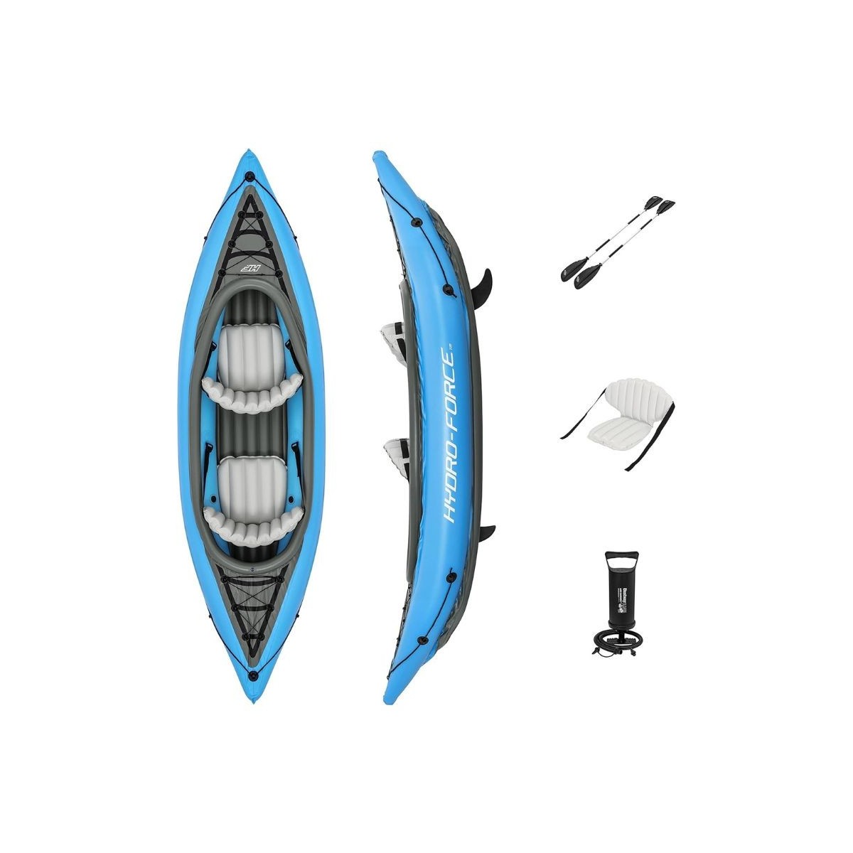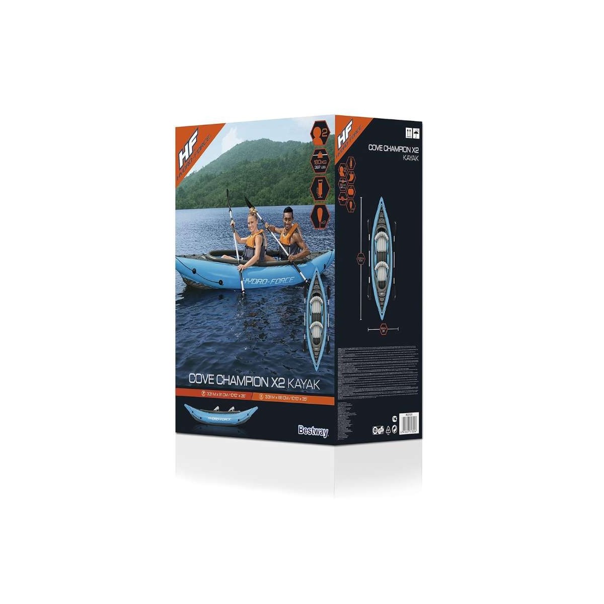 Esplora le acque con sicurezza, comodità e praticità con il kayak gonfiabile Hydro-Force Cove Champion X2, il compagno perfetto per le tue avventure all'aperto.