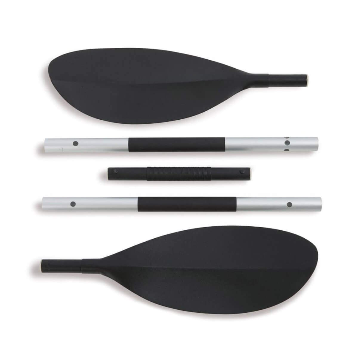 Il kayak viene fornito con due pagaie in alluminio, una pompa manuale, offrendo tutto il necessario per iniziare subito la tua esperienza in acqua.