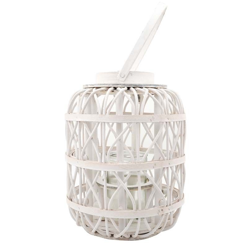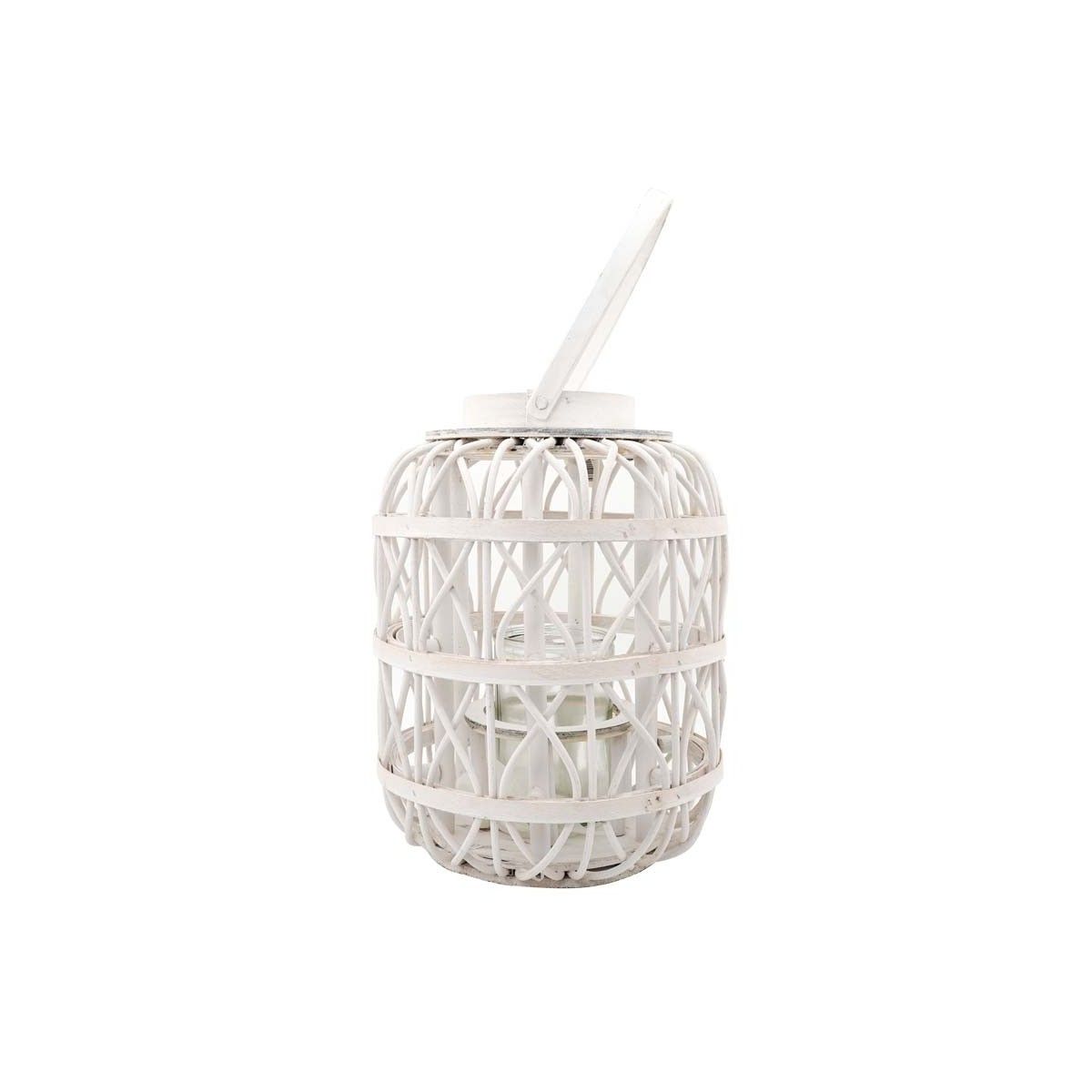 Lanterna in Legno Bianco Intrecciato 14x14xH.38 cm