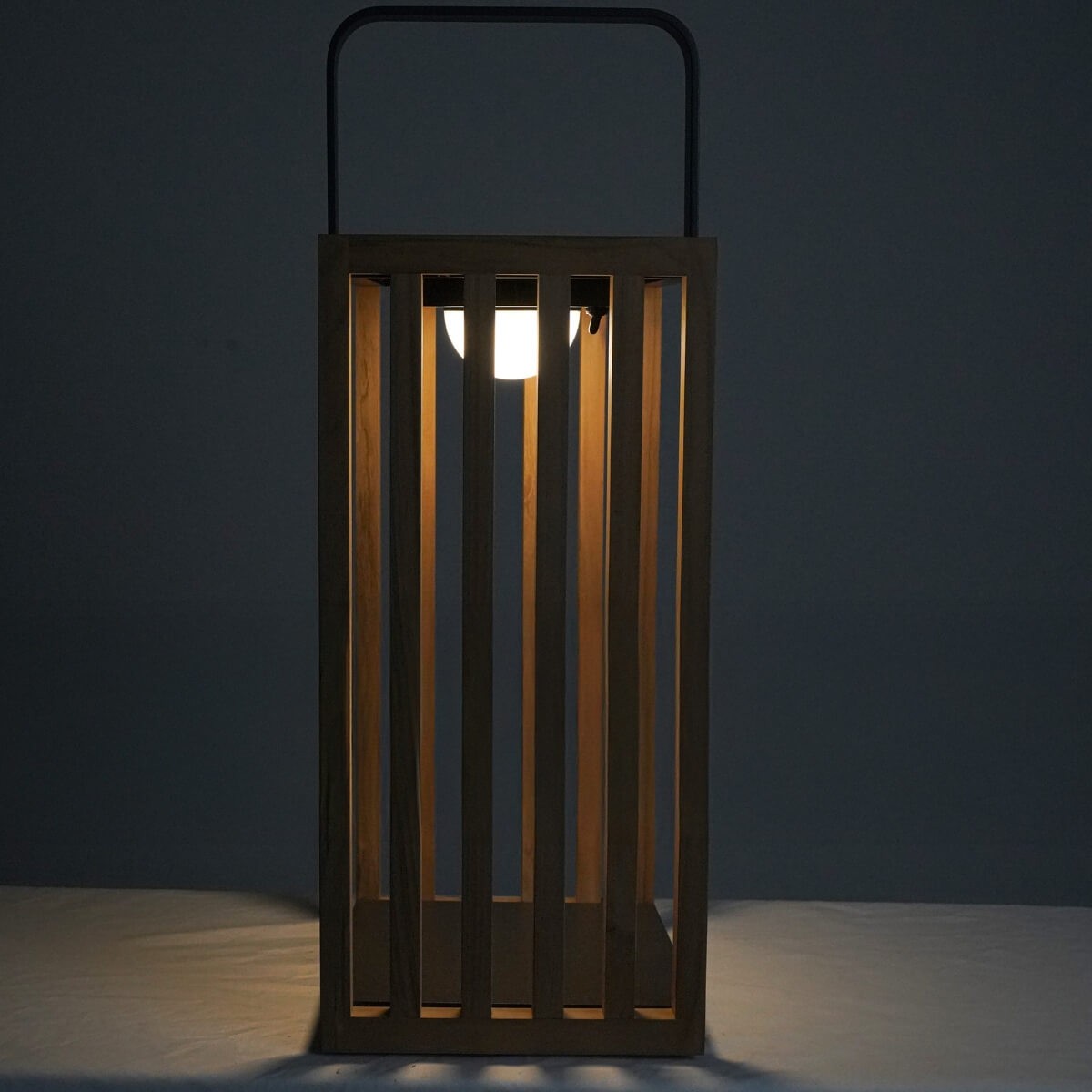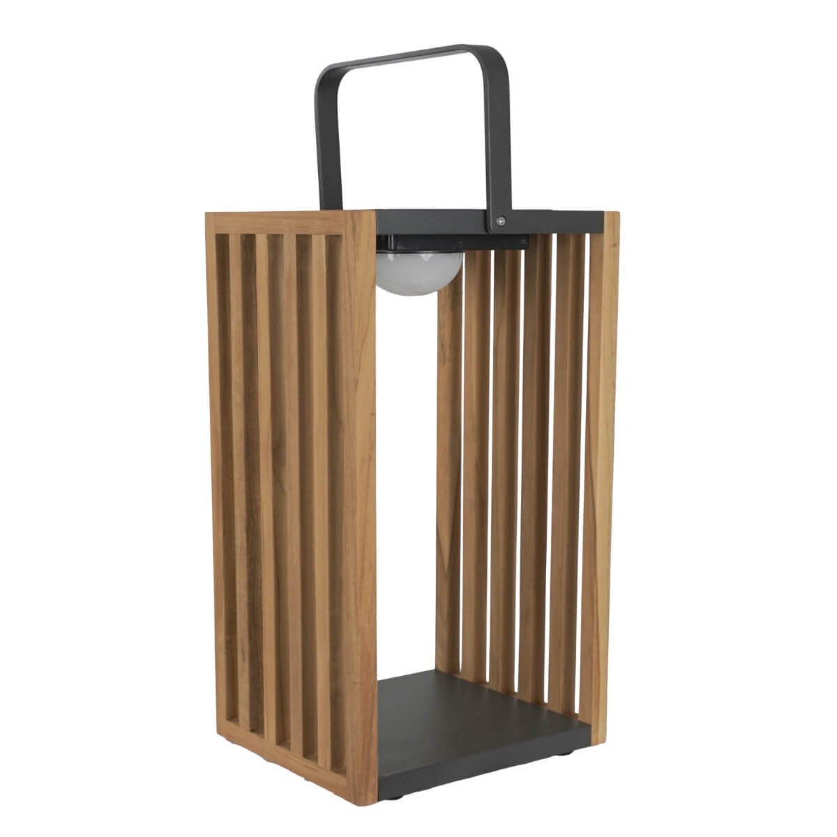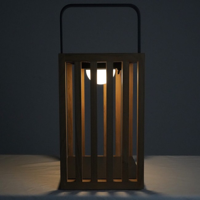 Grazie alla struttura geometrica in alluminio e listelli in teak naturale, si integra perfettamente in qualsiasi contesto di arredo contemporaneo. Dotata di 27 LED a luce calda, assicura una luminosità suggestiva e ben distribuita, alimentata da una batteria da 3.7V – 4Ah capace di offrire un’autonomia prolungata.