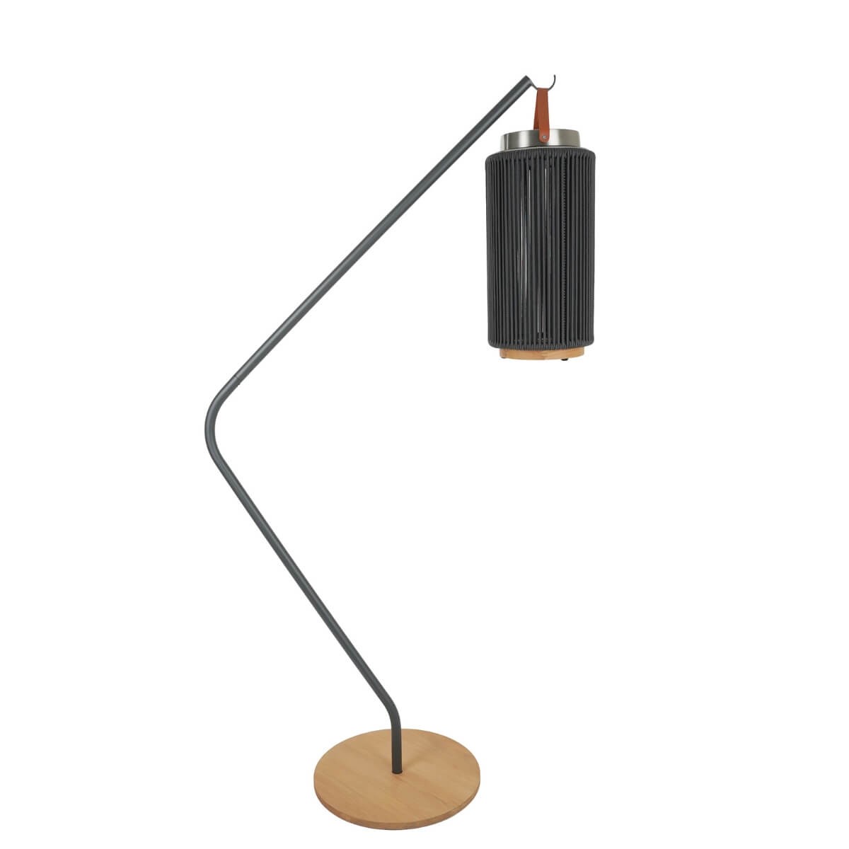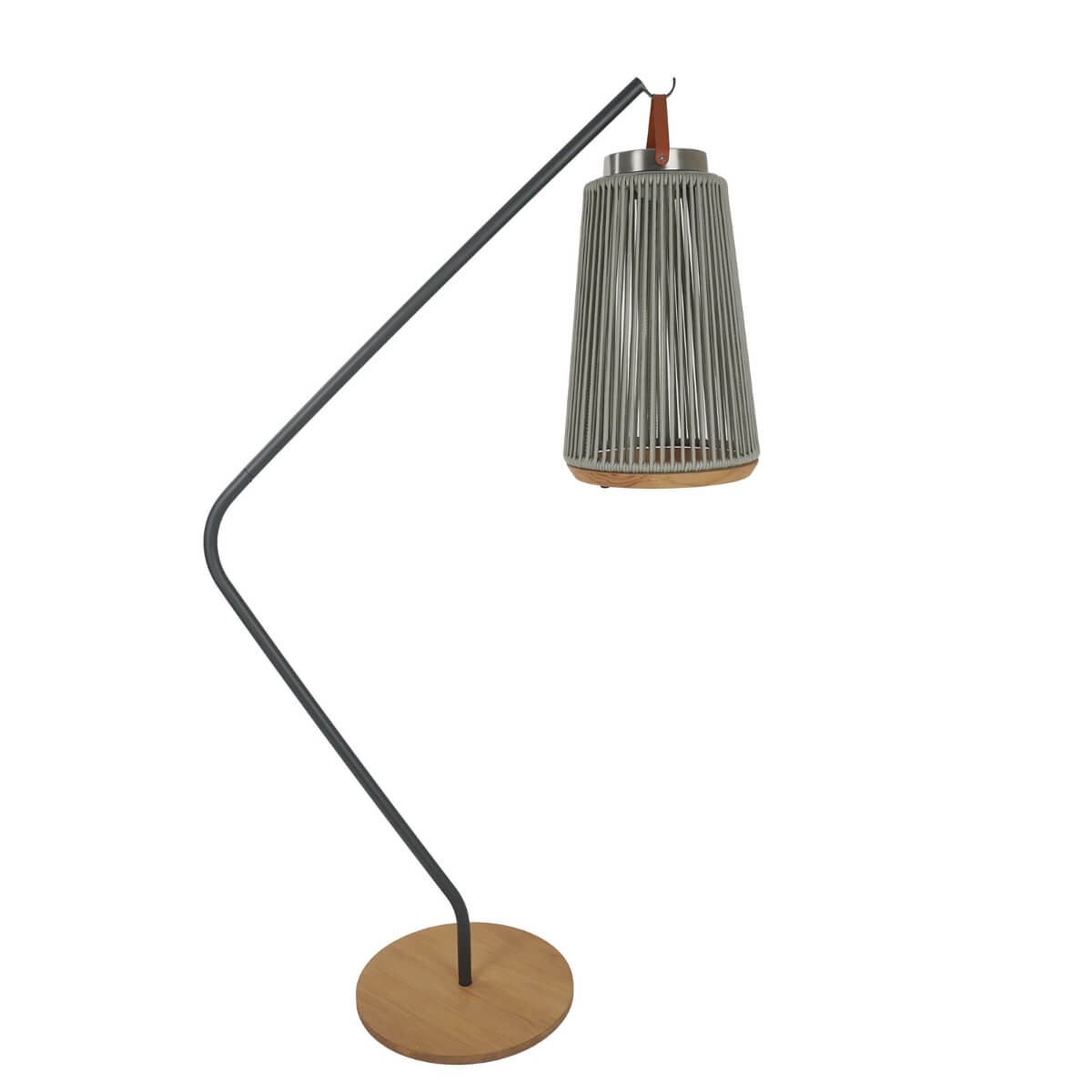 La struttura in acciaio inossidabile verniciato assicura resistenza agli agenti atmosferici e stabilità anche in spazi esposti, mentre la base circolare in teak naturale da 42 cm di diametro aggiunge un tocco caldo e raffinato. L’altezza totale di 165 cm permette di esporre le lampade con armonia, mantenendo l’illuminazione diffusa e ben distribuita.