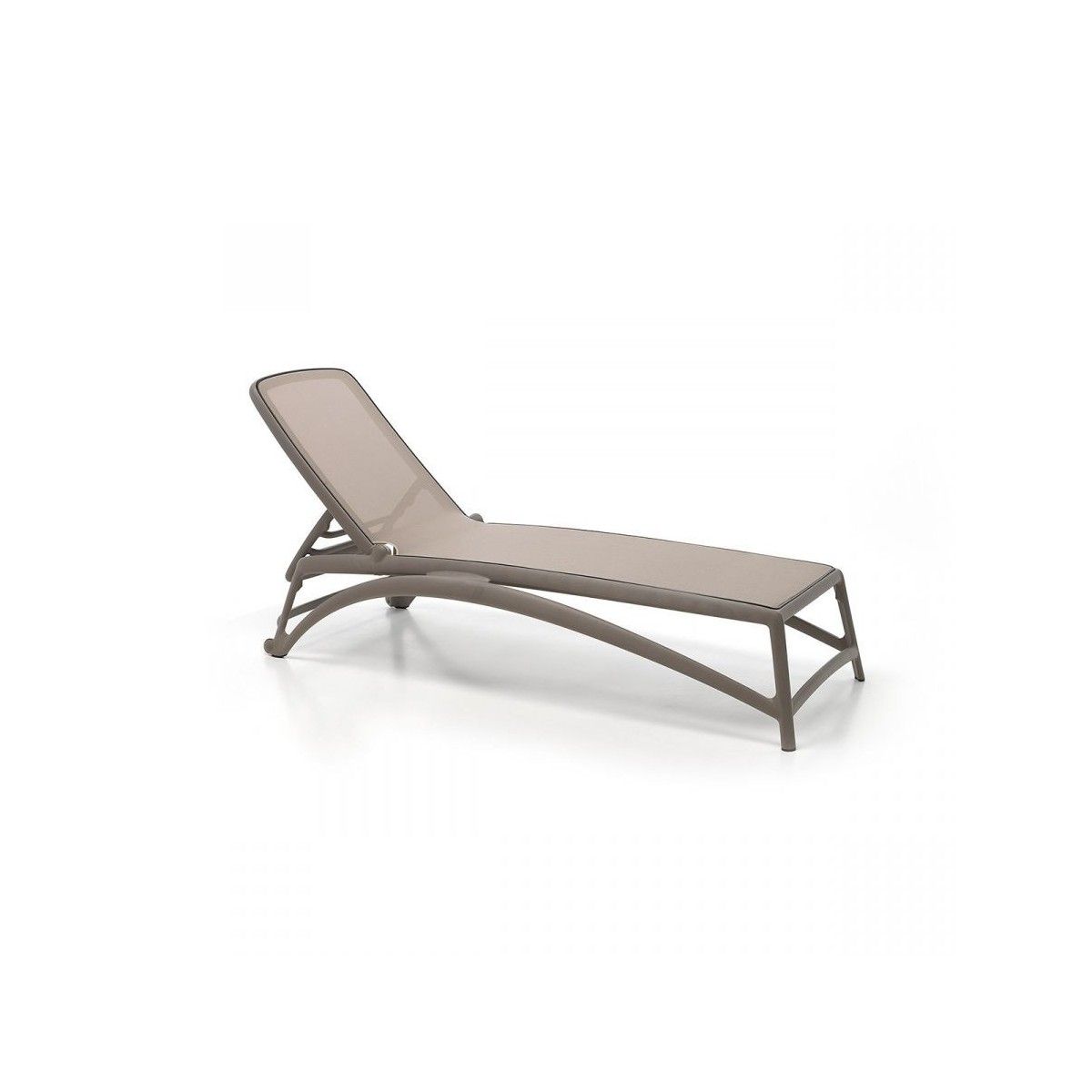 Il Lettino Atlantico presenta forme ergonomiche che si adeguano in modo uniforme ed elastico allo scarico del peso; design semplice ed elegante. Lettino prendisole senza braccioli, con struttura in resina fiberglass e tessuto traspirante e ricambiabile. Schienale regolabile su quattro posizioni. Struttura tubolare in polipropilene fiberglass trattato anti-uv e colorato in massa. Interno in tessuto sintetico traspirante e ricambiabile. Resina riciclabile.