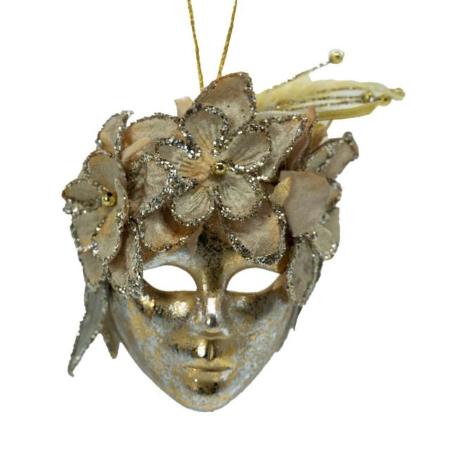 Maschera Natalizia Decorativa Oro e Avorio H 12 cm – Eleganza Classica per Alberi e Allestimenti