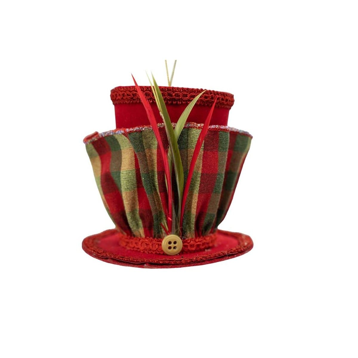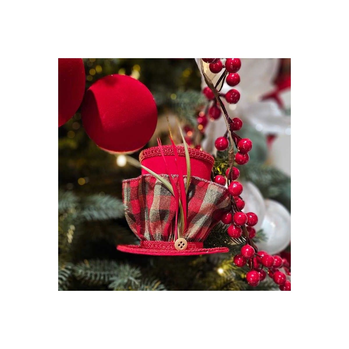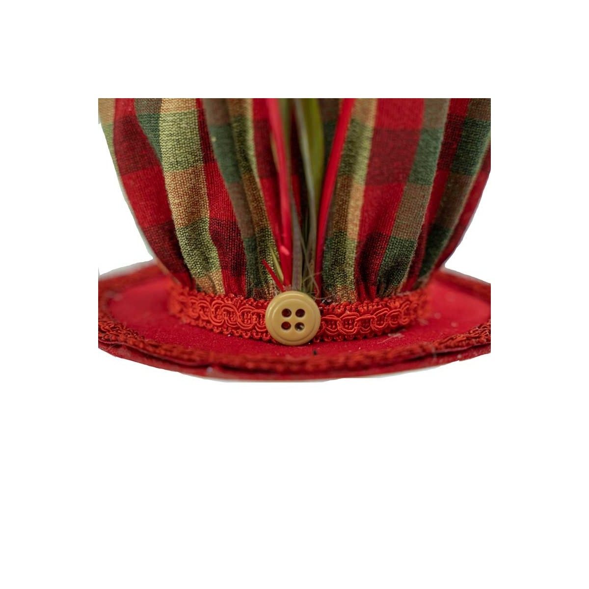 Cappello Natalizio da Appendere Rosso con Fantasia a Quadri H.10 cm
