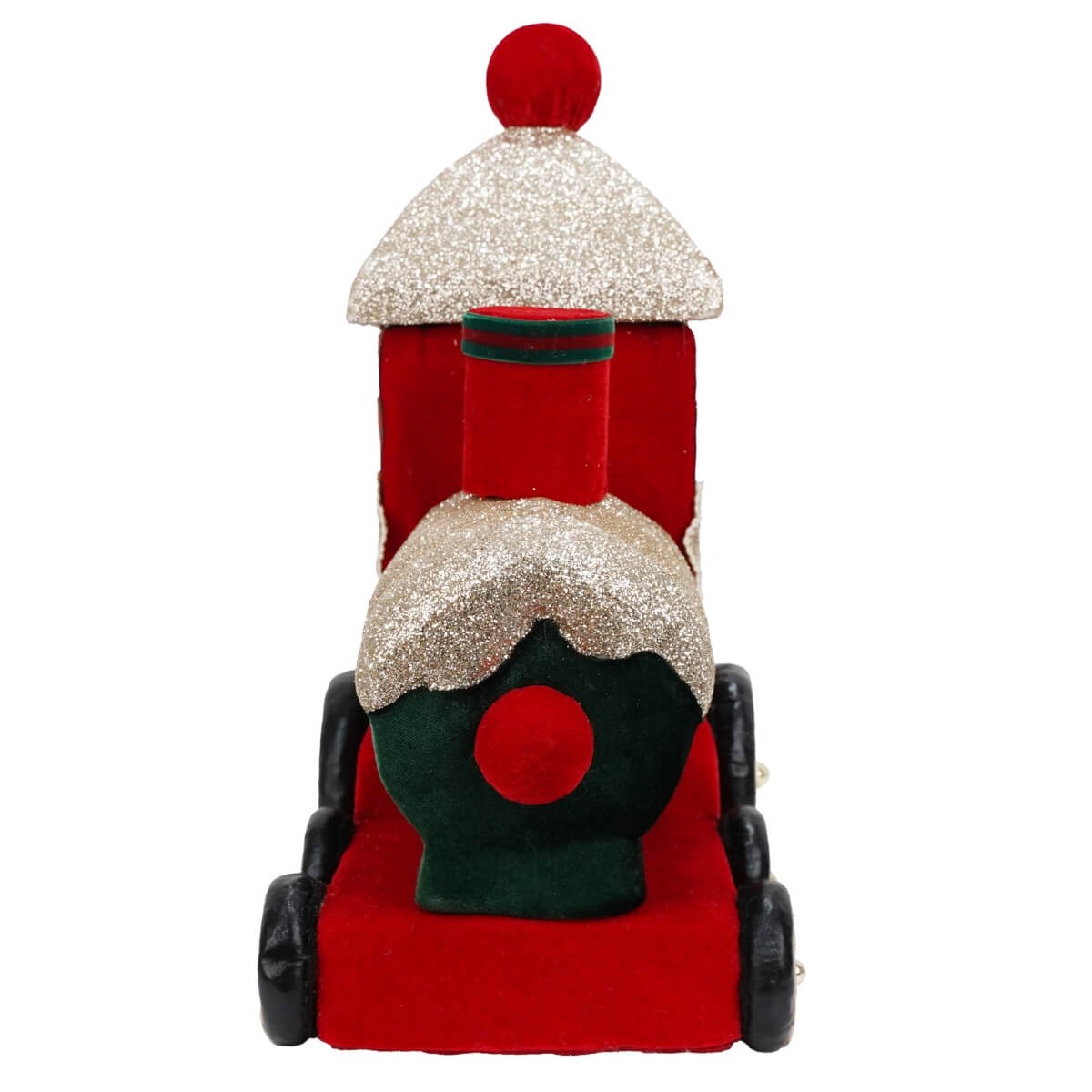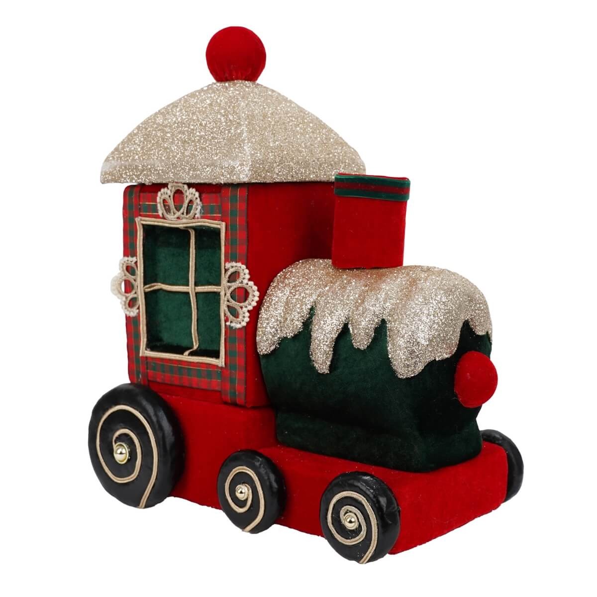 Trenino Natalizio Decorativo in Tessuto Rosso, Verde e Oro – 56x41 cm in Vellutino e Poliestere