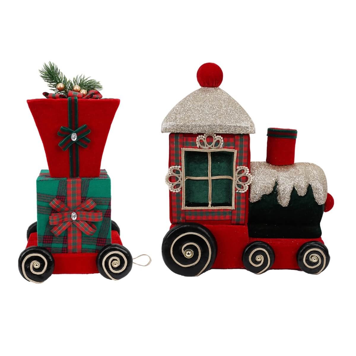 Trenino Natalizio in Tartan e Velluto 56xH.41 cm