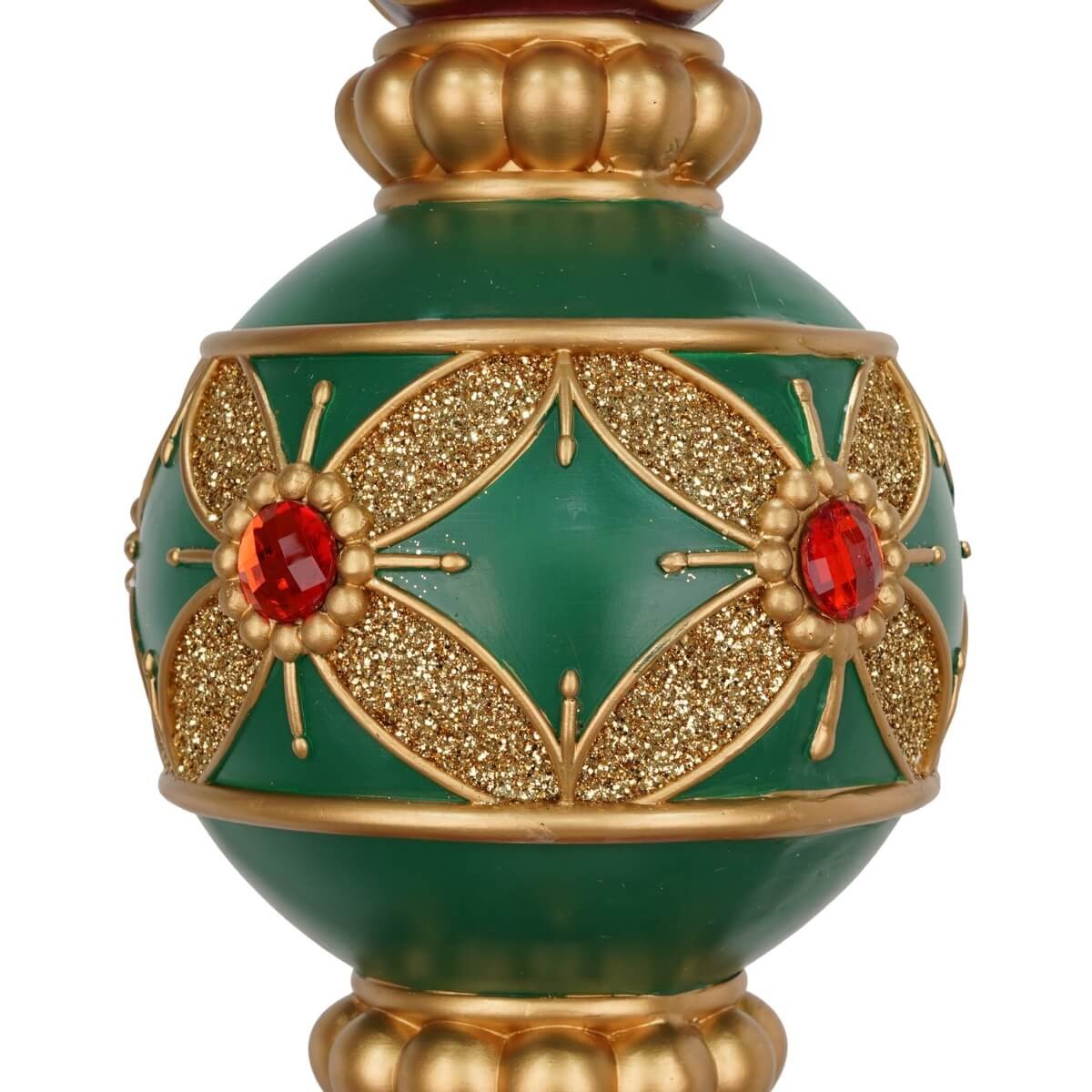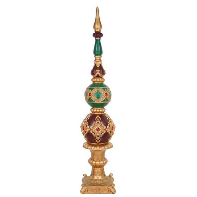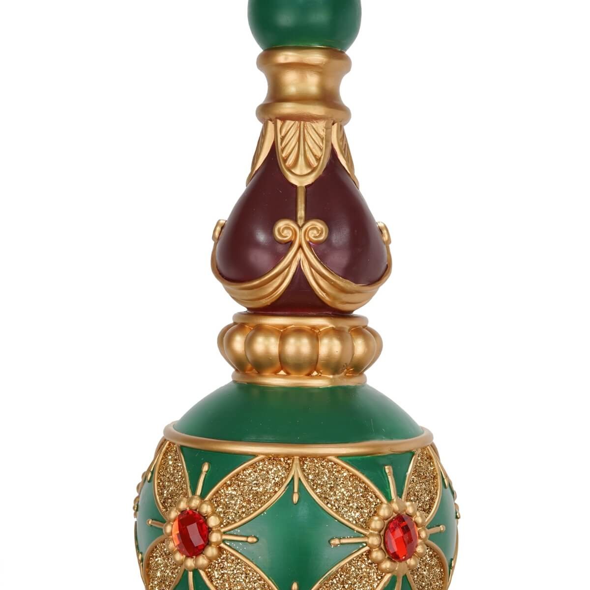 Rendi le tue decorazioni natalizie davvero scenografiche con questa maestosa scultura a forma di puntale, alta ben 152 cm. Realizzata in resina con finiture di alta qualità, combina l’eleganza del verde smeraldo con la ricchezza del bordeaux e dell’oro, decorata da rilievi e applicazioni che evocano lo splendore delle feste tradizionali.