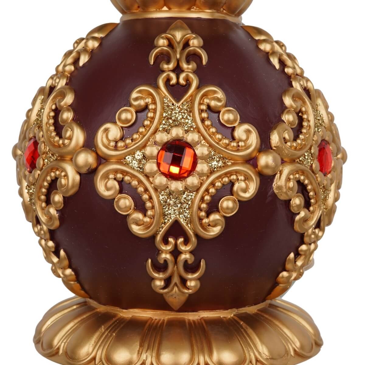 Ideale come elemento decorativo da terra per ingressi, vetrine, showroom o ambientazioni tematiche, questa scultura è perfetta anche come totem ornamentale in un allestimento a tema Natale Reale. I suoi dettagli intagliati, i motivi barocchi e le sfere centrali la rendono un punto focale di grande impatto visivo.
