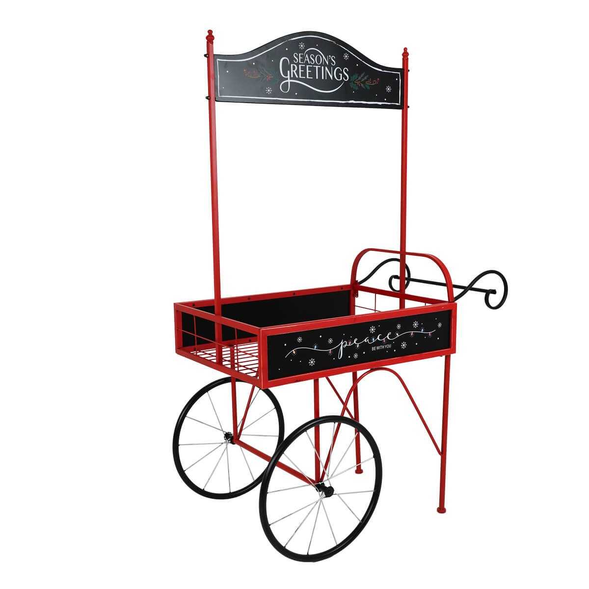 Carretto Espositore Natalizio in Ferro e Legno di Abete 92x67xH.167 cm