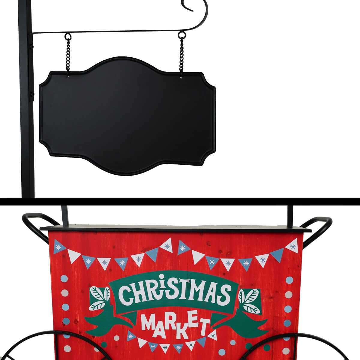 Carretto Espositore Natalizio in Ferro e Legno di Abete 149x39xH.213 cm