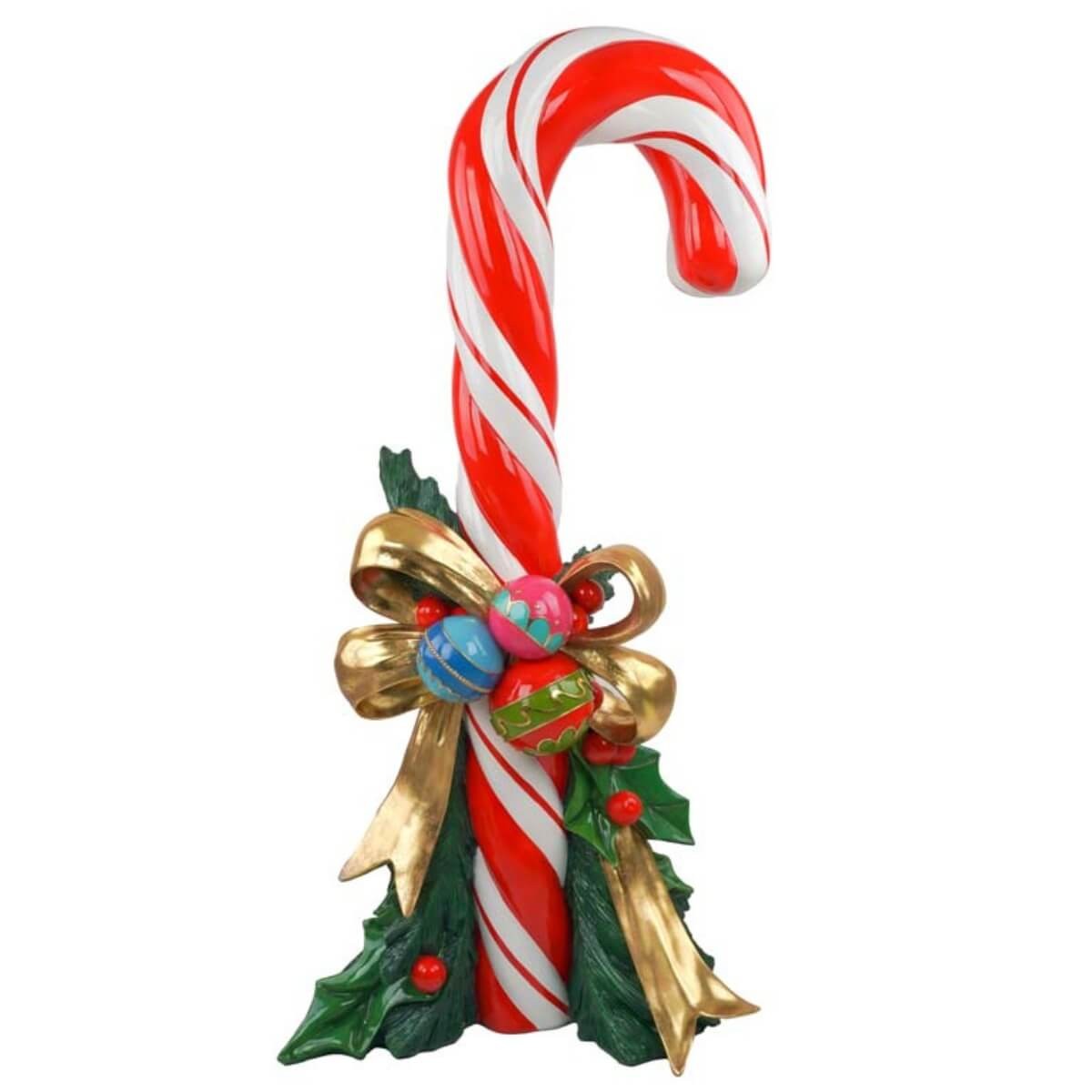 Scultura Bastoncino Natalizio con Agrifoglio in Resina – Decorazione Natalizia Bianca, Rossa e Oro H 136,5 cm