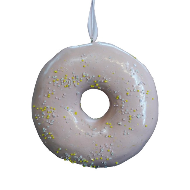 Aggiungi un tocco giocoso e goloso al tuo albero con la ciambella natalizia da appendere, una decorazione originale perfetta per atmosfere festive allegre e creative. Realizzata in resina di alta qualità, questa ciambella decorativa da 10 cm di diametro è rifinita con una glassa lucida e allegri zuccherini colorati che la rendono incredibilmente realistica.