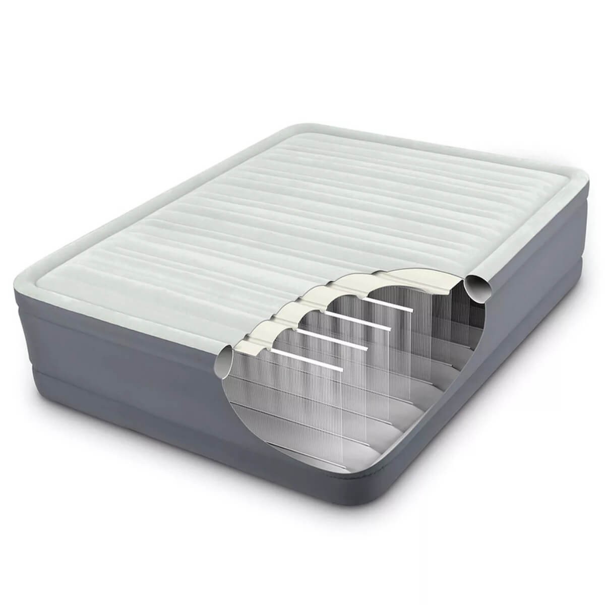 La pompa elettrica integrata QuickFill Plus semplifica il gonfiaggio e lo sgonfiaggio in pochi minuti, senza bisogno di attrezzi aggiuntivi, rendendo questo materasso estremamente pratico per l’uso domestico, in vacanza o in caso di ospiti a sorpresa.