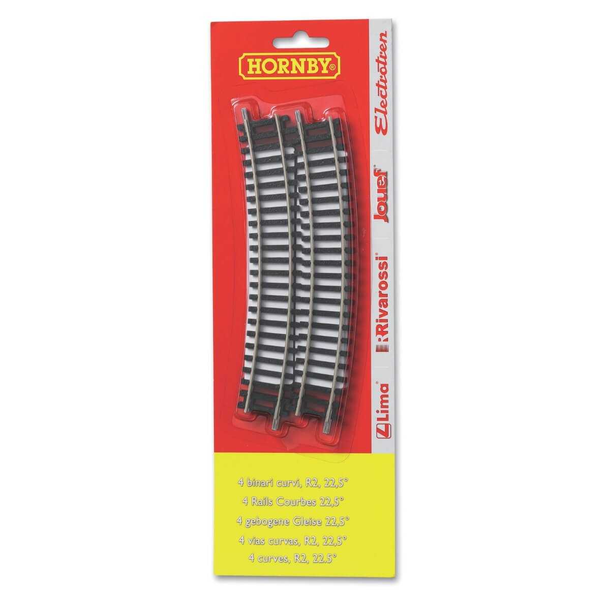 Blister 4 Binari Curvi R2 Hornby – Curvatura 22.5° per Tracciati Ferroviari Creativi