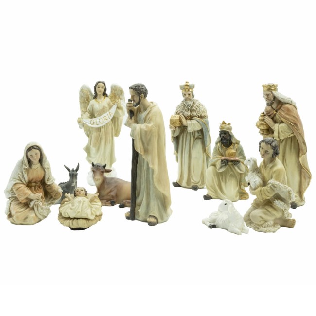 Natività 11 Pezzi in Poliresina H.20 cm – Presepe Completo con Magi, Pastore e Angelo