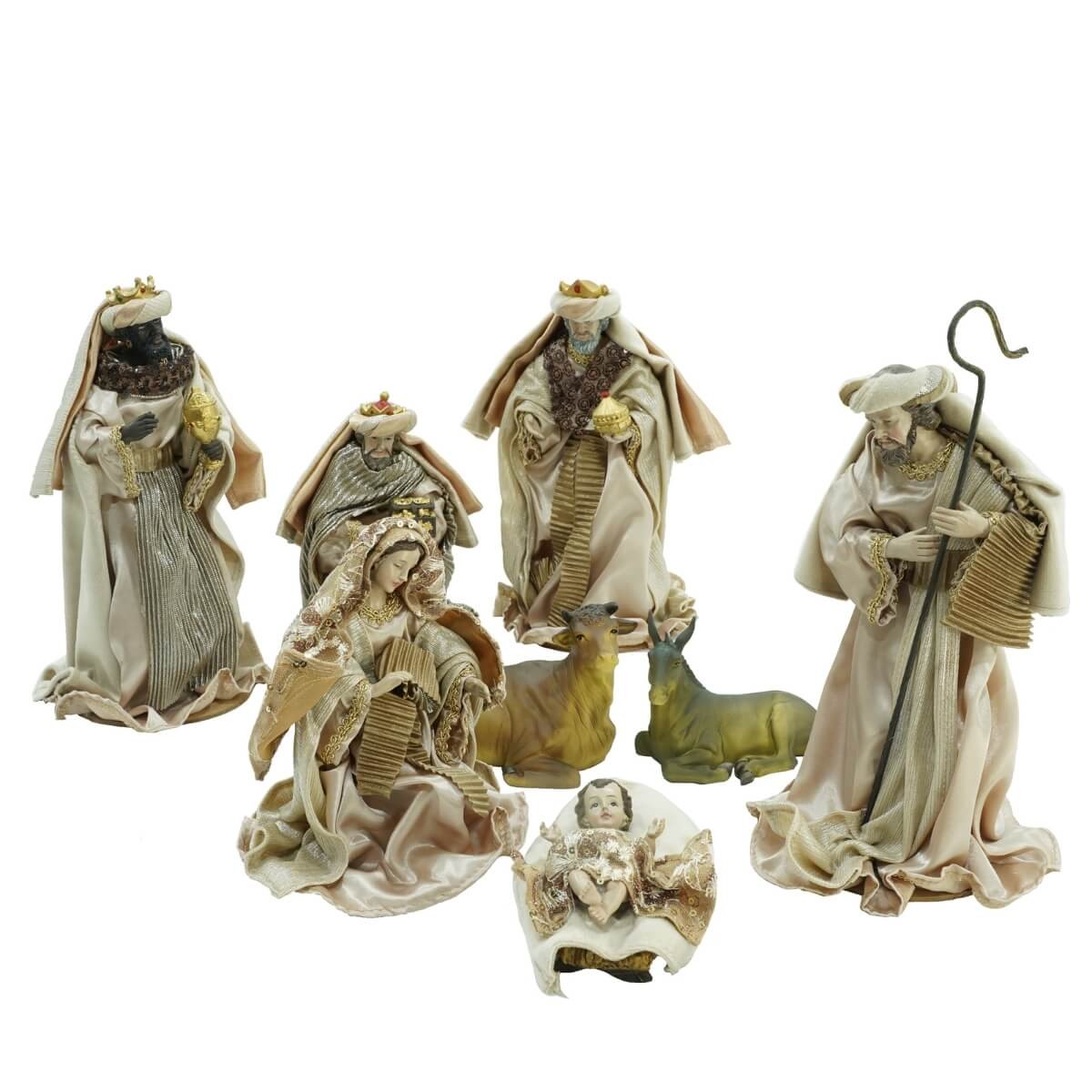 Natività in Poliresina e Tessuto 8 Pz. H.25 cm