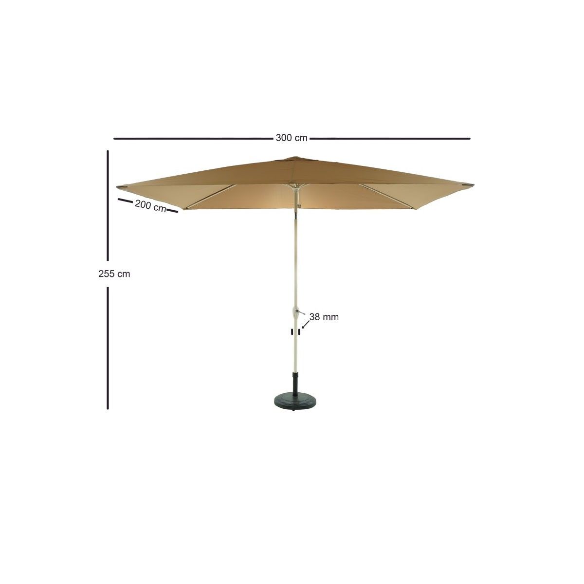 - Dimensioni aste dell'ombrellone: 2x1,5 cm