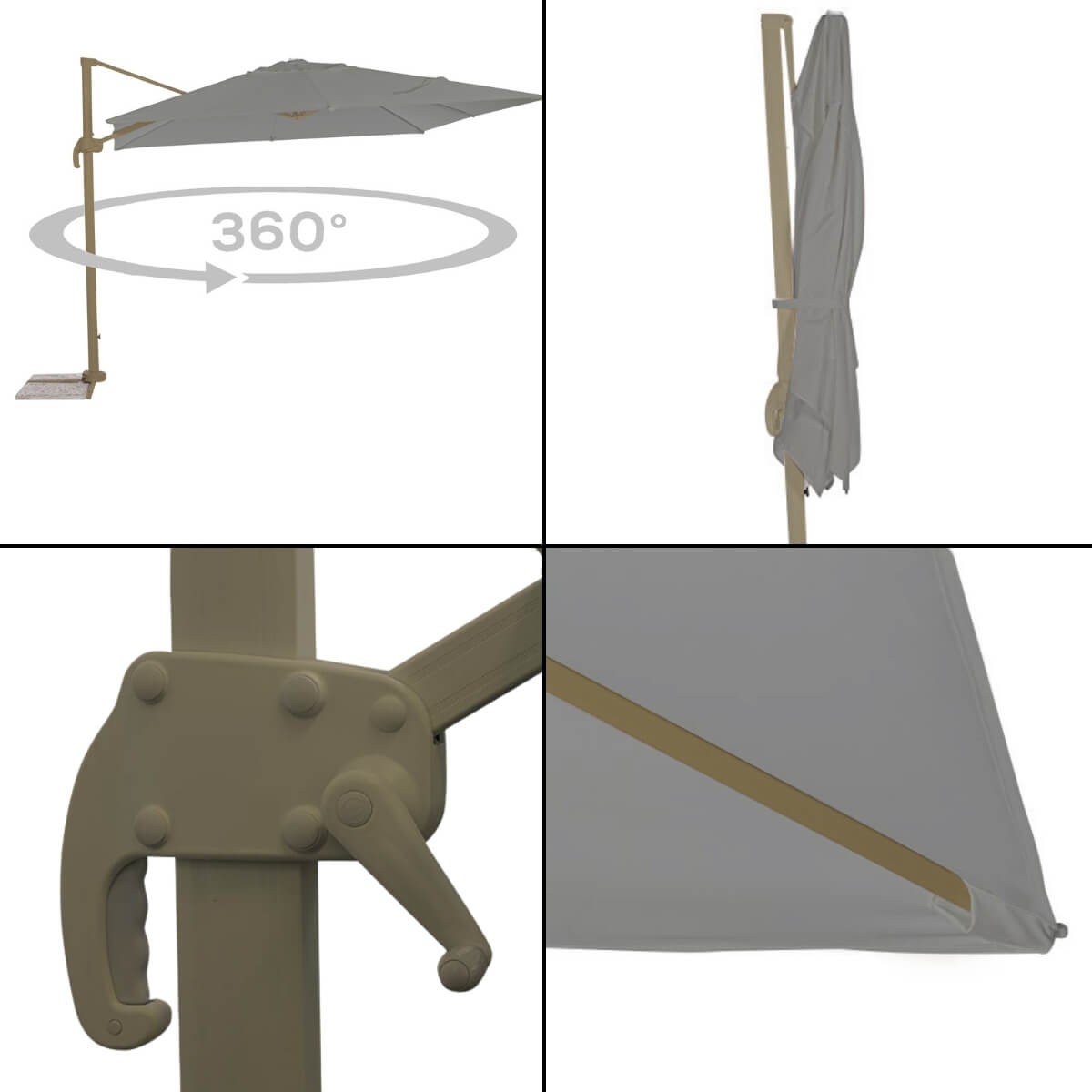 Ombrellone Decentrato da Giardino in Alluminio 3x3 mt Grigio-Tortora | Alba