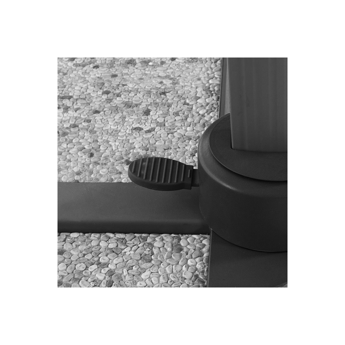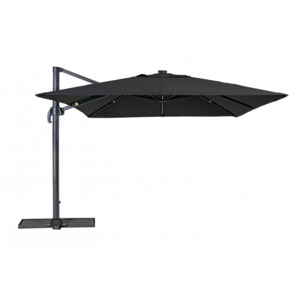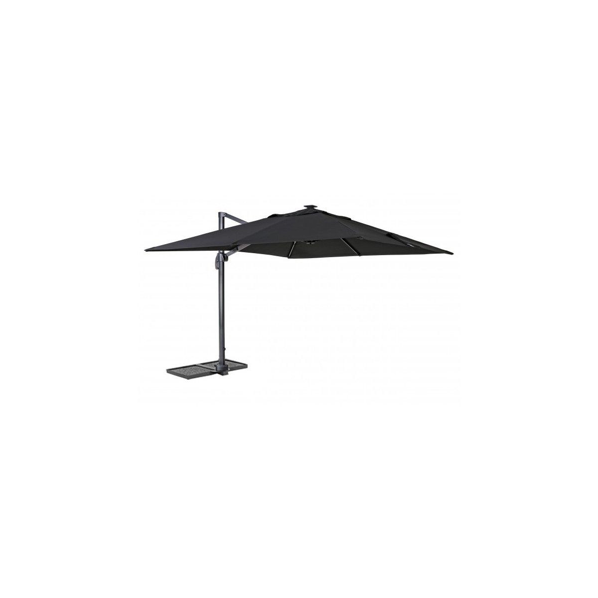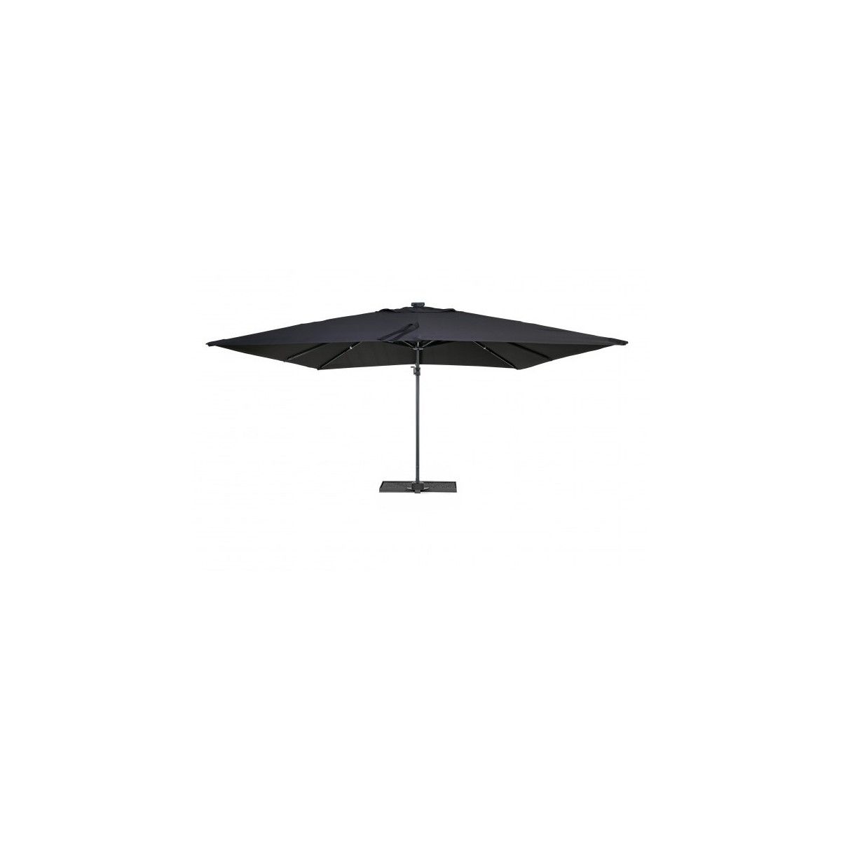 Con la regolazione dell'inclinazione in 5 posizioni e la rotazione a 360° con pedale a frizione, potrai facilmente adattare l'ombrellone con palo decentrato alle tue esigenze e godere di una copertura completa. Il telo nero in poliestere e acrilico con camino antivento, ti garantirà una protezione ottimale dai raggi UV.
