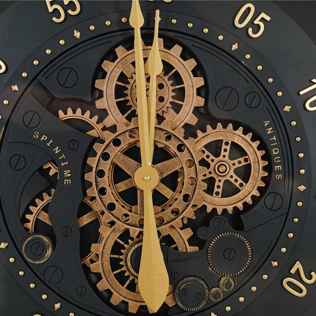 Orologio da Parete Nero e Oro con Ingranaggi D.80 cm