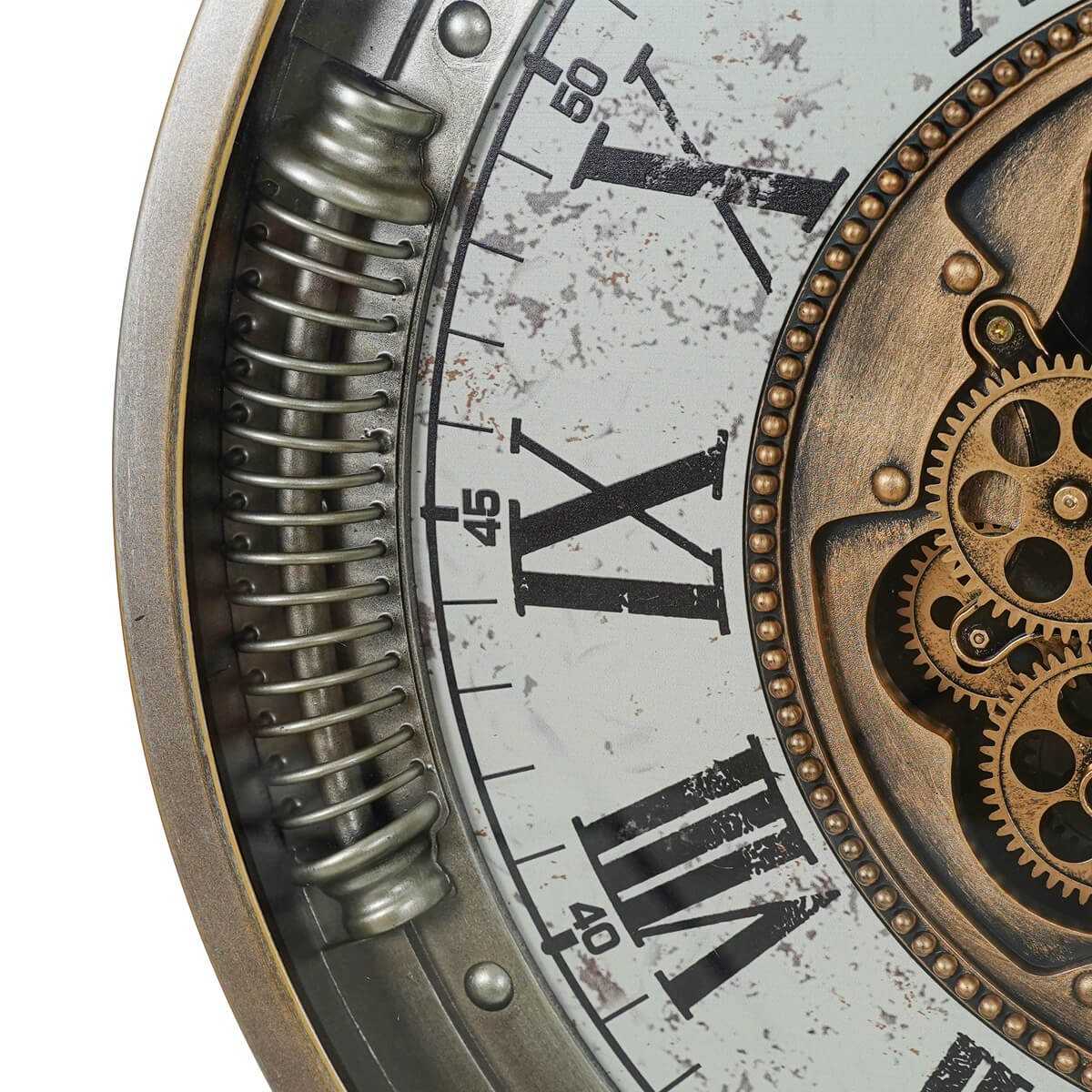 Trasforma il tuo spazio con il nostro sofisticato orologio da parete con ingranaggi, un elemento di design dal diametro di 66 cm che cattura l'attenzione. Realizzato con il 60% metallo, 30% legno e 10% plastica, questo orologio combina robustezza e stile in una raffinata palette di colori ottone e bianco. Alimentato a batteria per garantire una facile manutenzione e una lunga durata, è l'accessorio perfetto per qualsiasi ambiente.