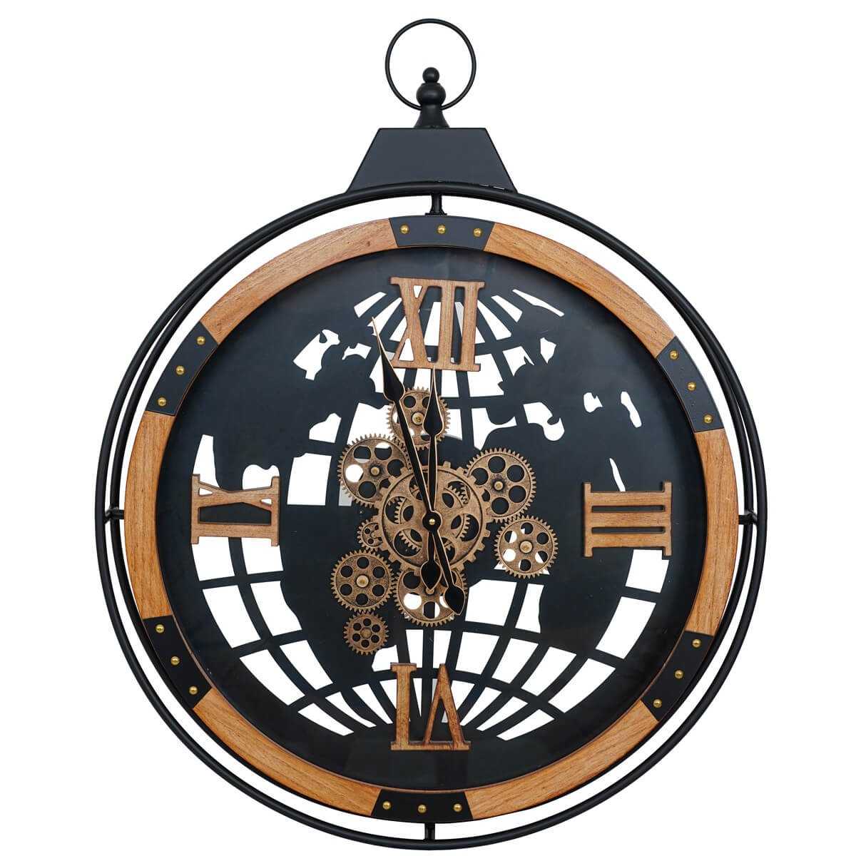 Orologio da Parete Mappamondo Nero e Bronzo D.66 cm