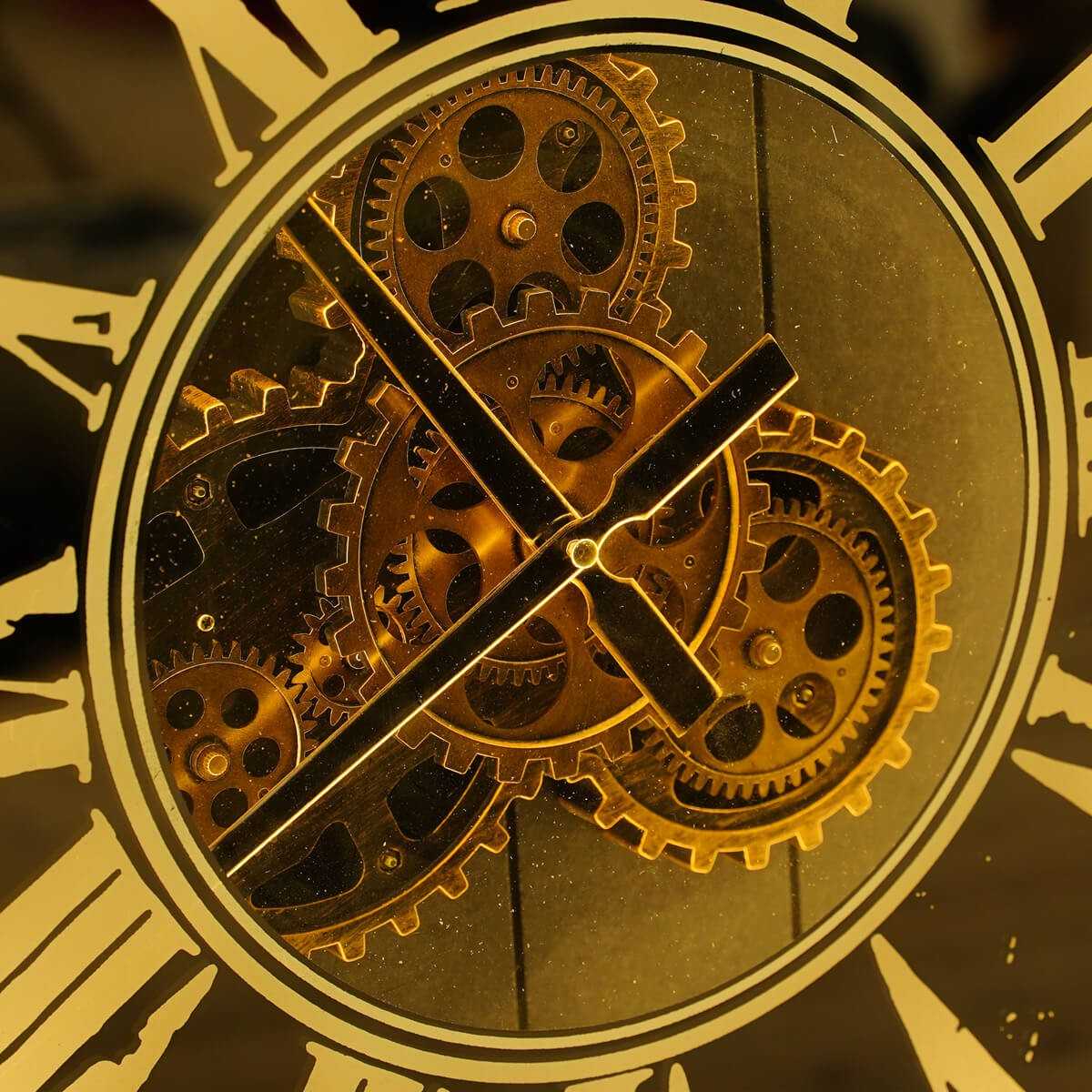 Orologio da Parete con LED e Ingranaggi a Vista - Design Industriale in Nero e Oro, 60 cm