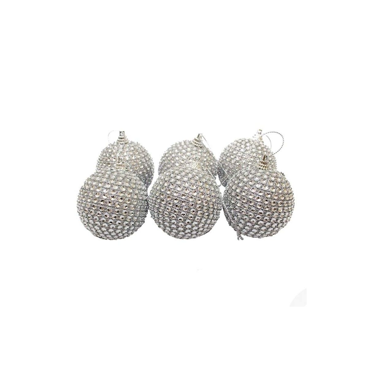 Set 6 Palle di Natale con Strass Argento D.6 cm