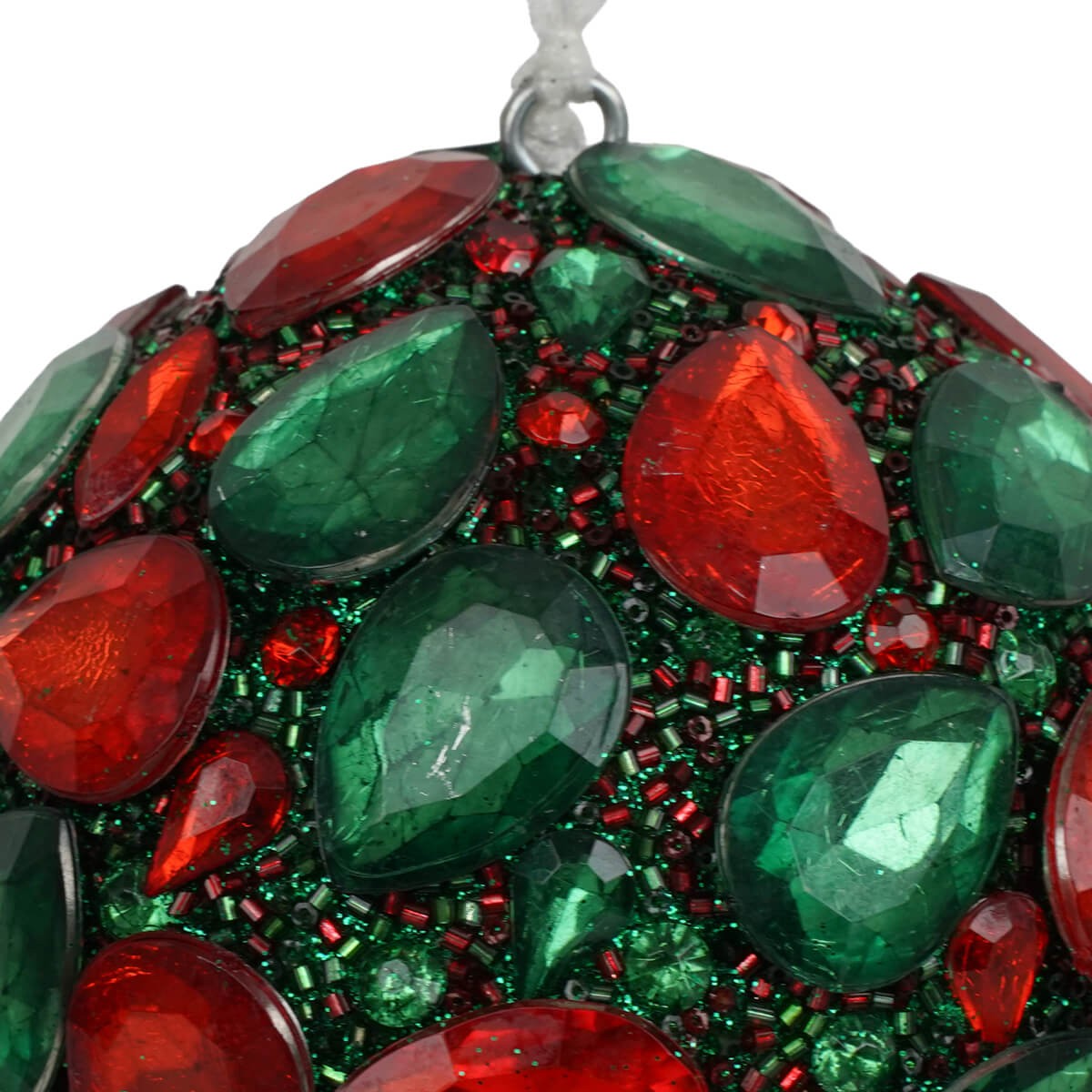 - Pallina di Natale in plastica decorata con gemme rosse e verdi, per un effetto luminoso e festoso che valorizza ogni albero