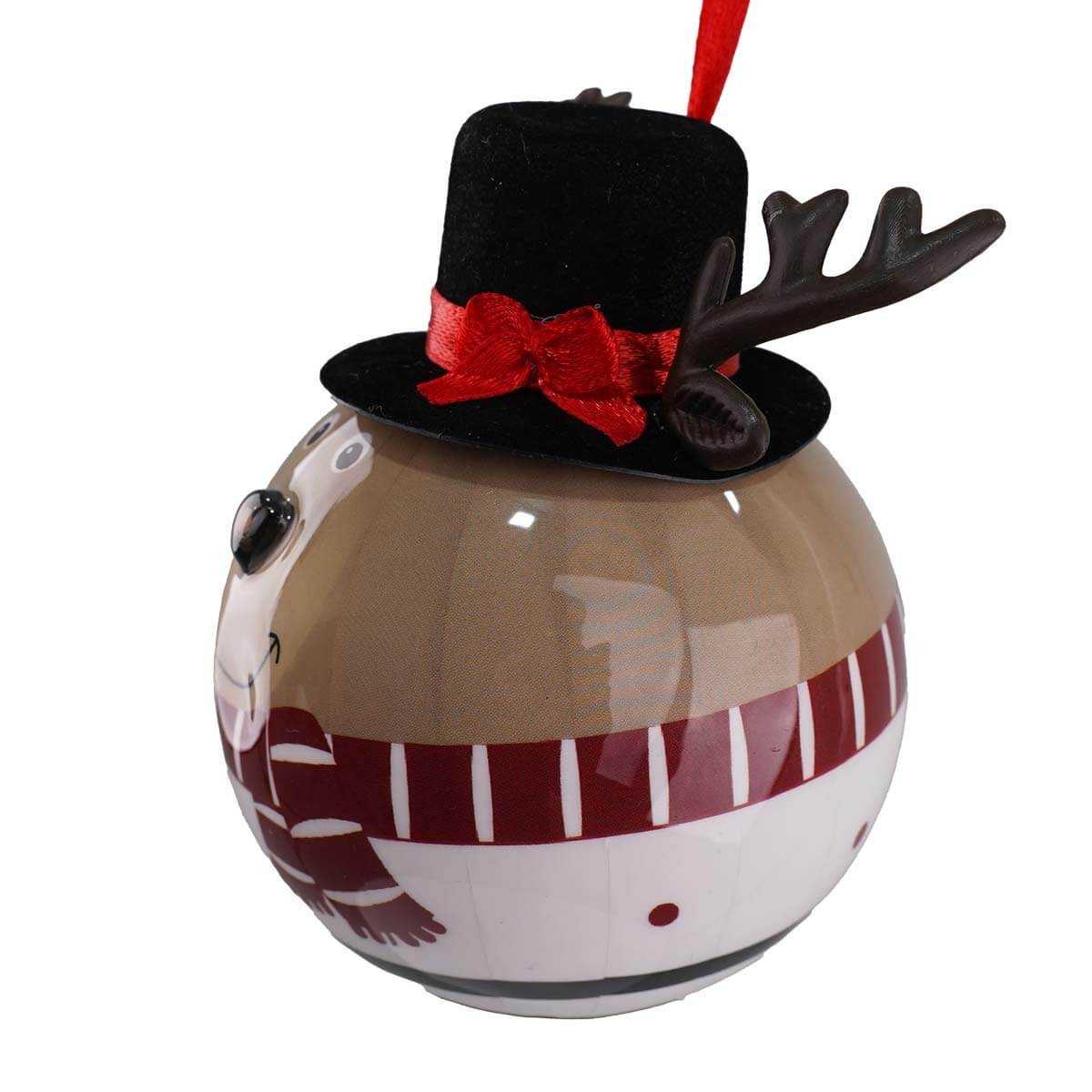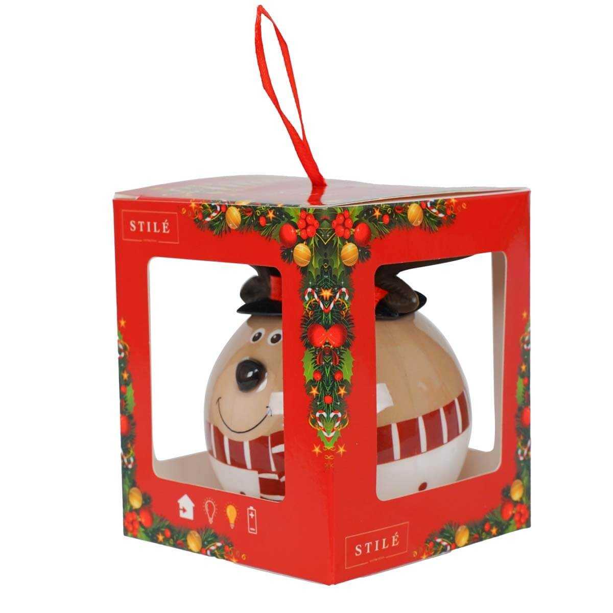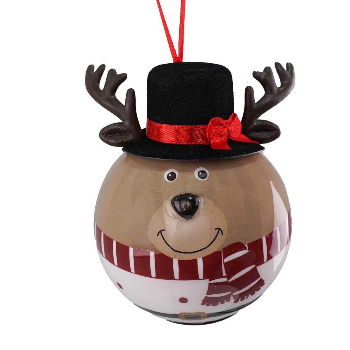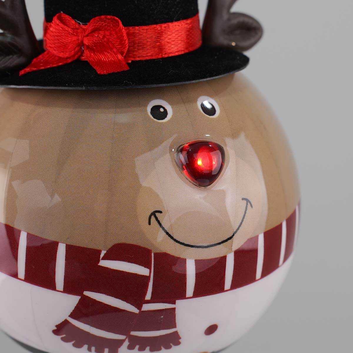 Pallina Natalizia Luminosa a Forma di Renna con Cilindro, 8 cm