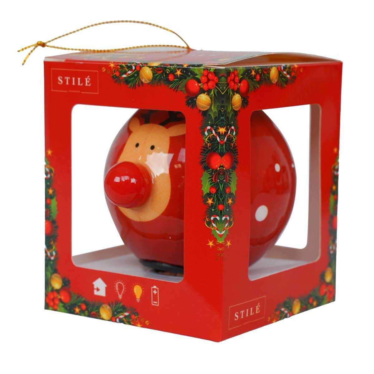 - Design Festivo: Decorata con una simpatica renna dal naso rosso luminoso, perfetta per portare allegria all'albero di Natale.