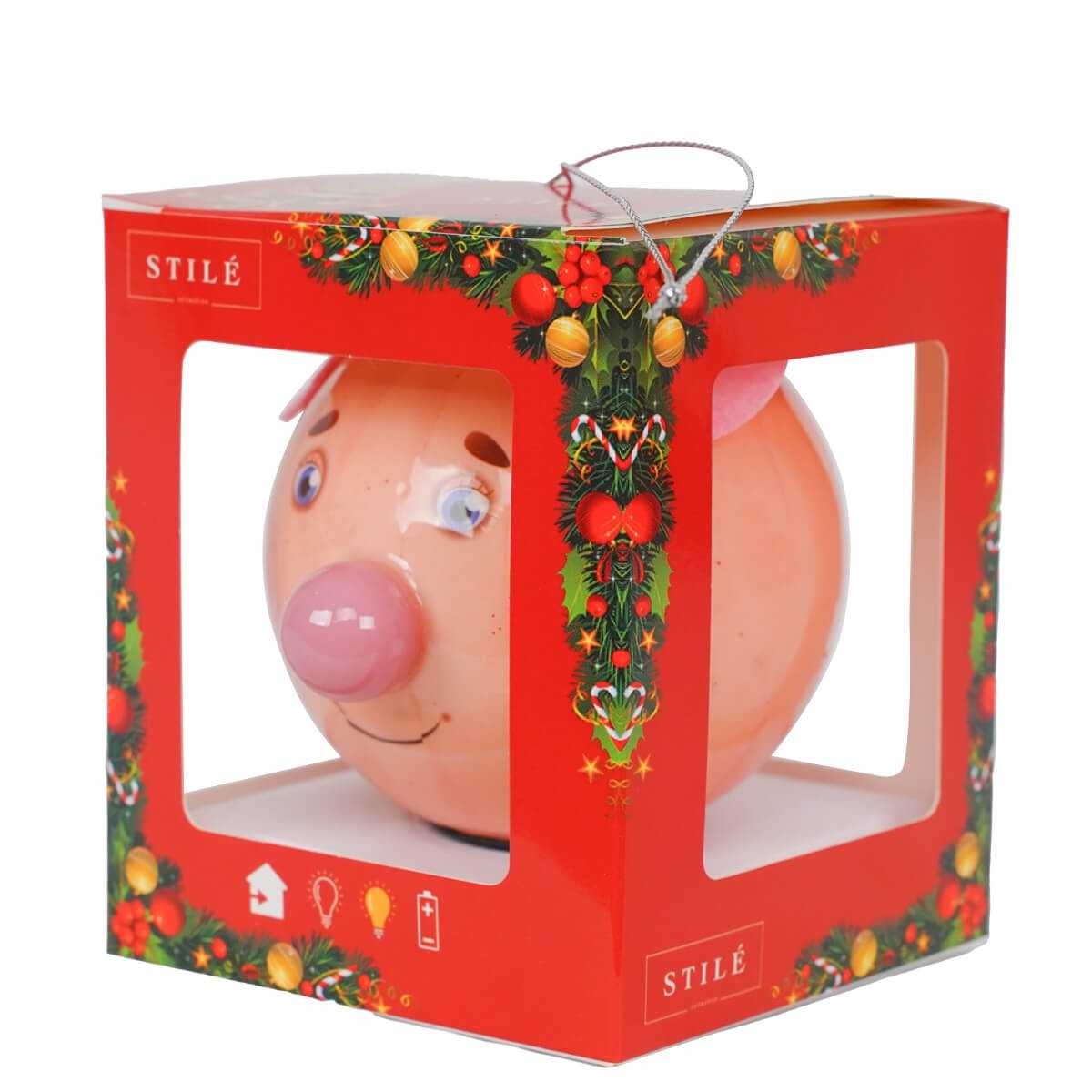 Pallina Natalizia Luminosa Maialino - Diametro 8 cm con Batteria e Confezione Regalo