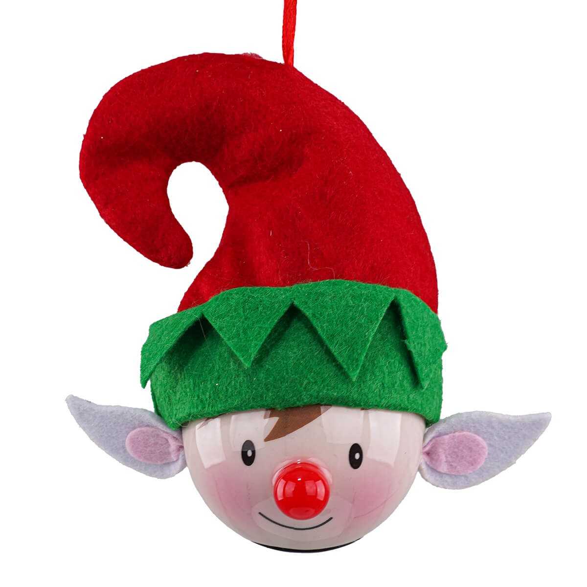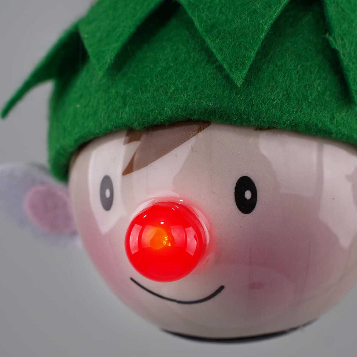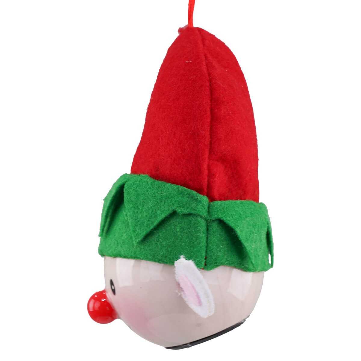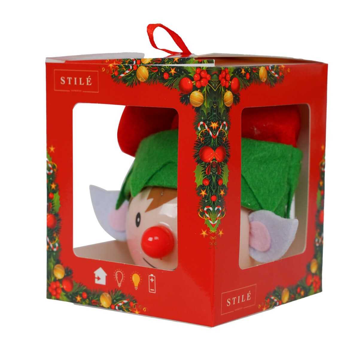 Pallina Natalizia a Forma di Elfo con Luce - Diametro 6,5 cm, Batteria Inclusa