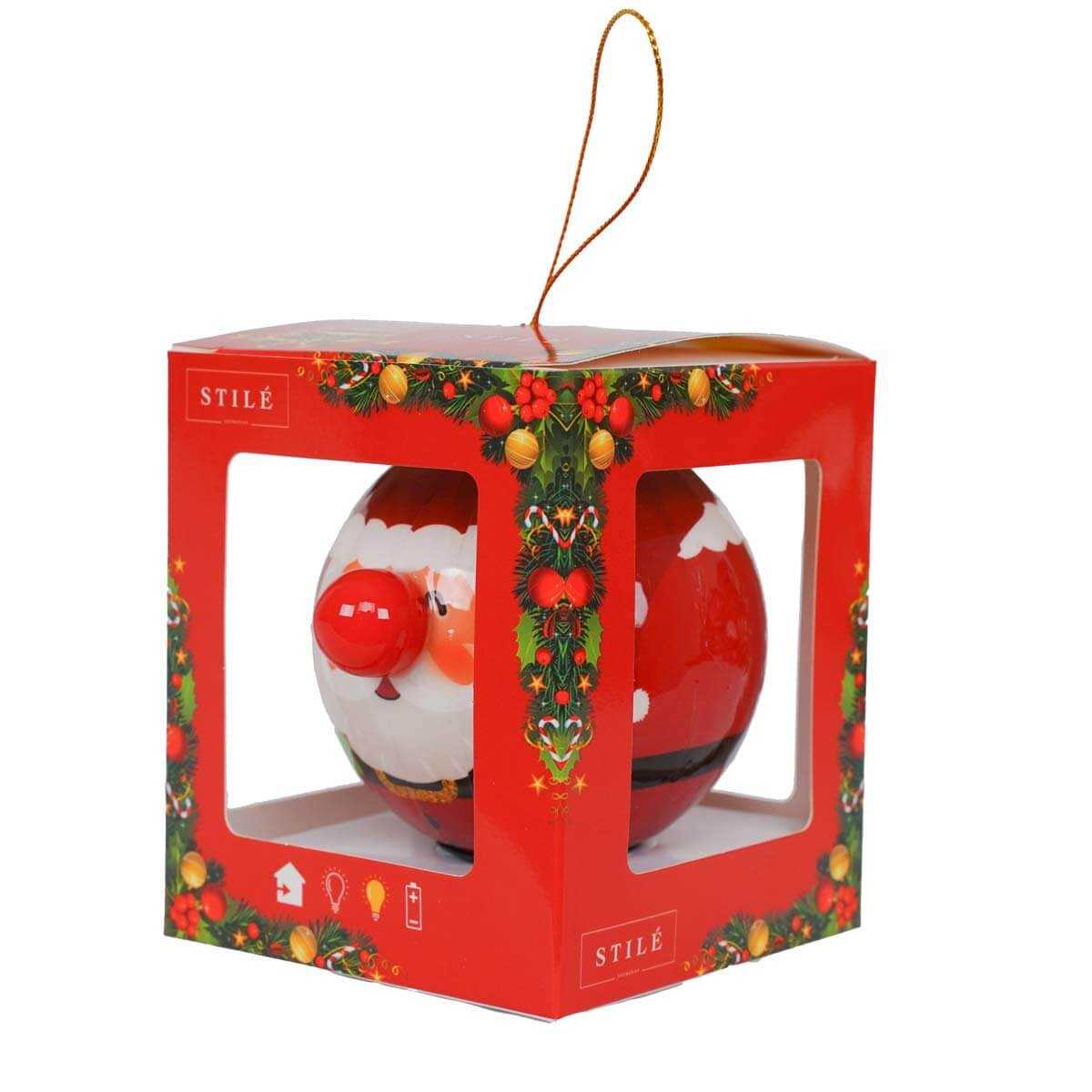 Pallina Natalizia Luminosa con Babbo Natale, Diametro 8 cm - Con Batteria e Confezione Regalo