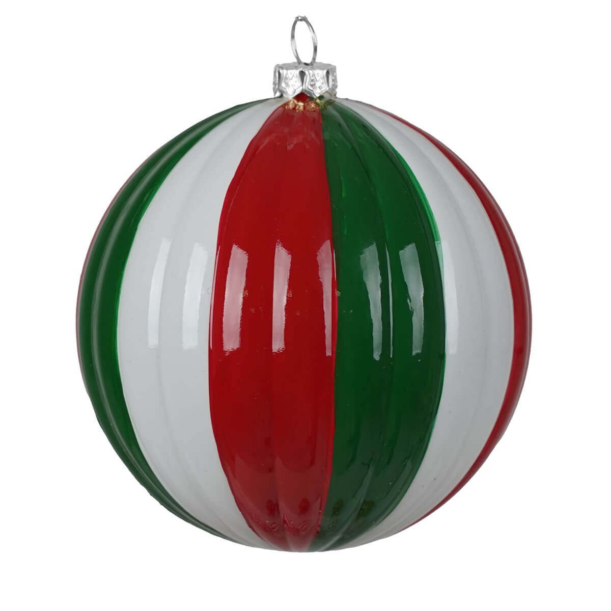 Palla Natalizia a Strisce Rosse, Verdi e Bianche da Appendere – Decorazione in Plastica Ø 8/10 cm