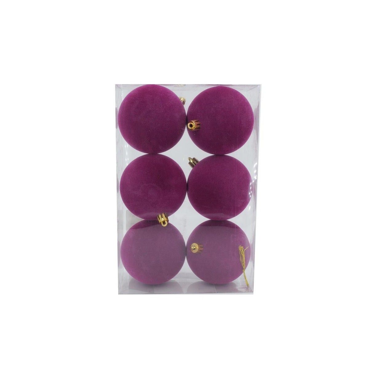 Palle di Natale in Plastica e Velluto D.8 cm Conf. da 6 Pezzi