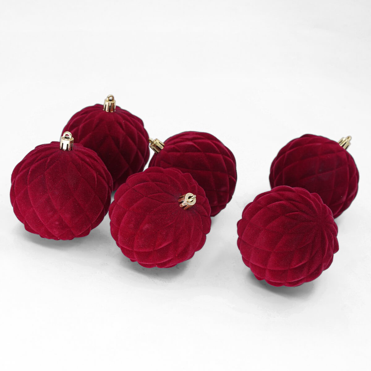 Palle di Natale in Plastica e Velluto D.8 cm Conf. da 6 Pz
