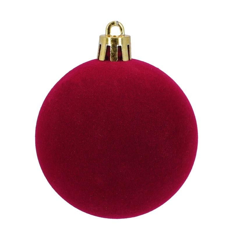 Palle di Natale in Plastica e Velluto D.6 cm Conf. da 12 Pz