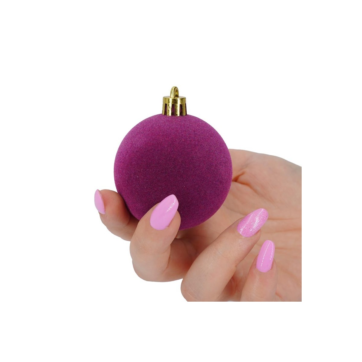 Palle di Natale in Plastica e Velluto D.6 cm Conf. da 12 Pz