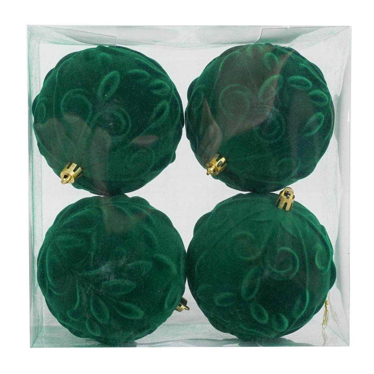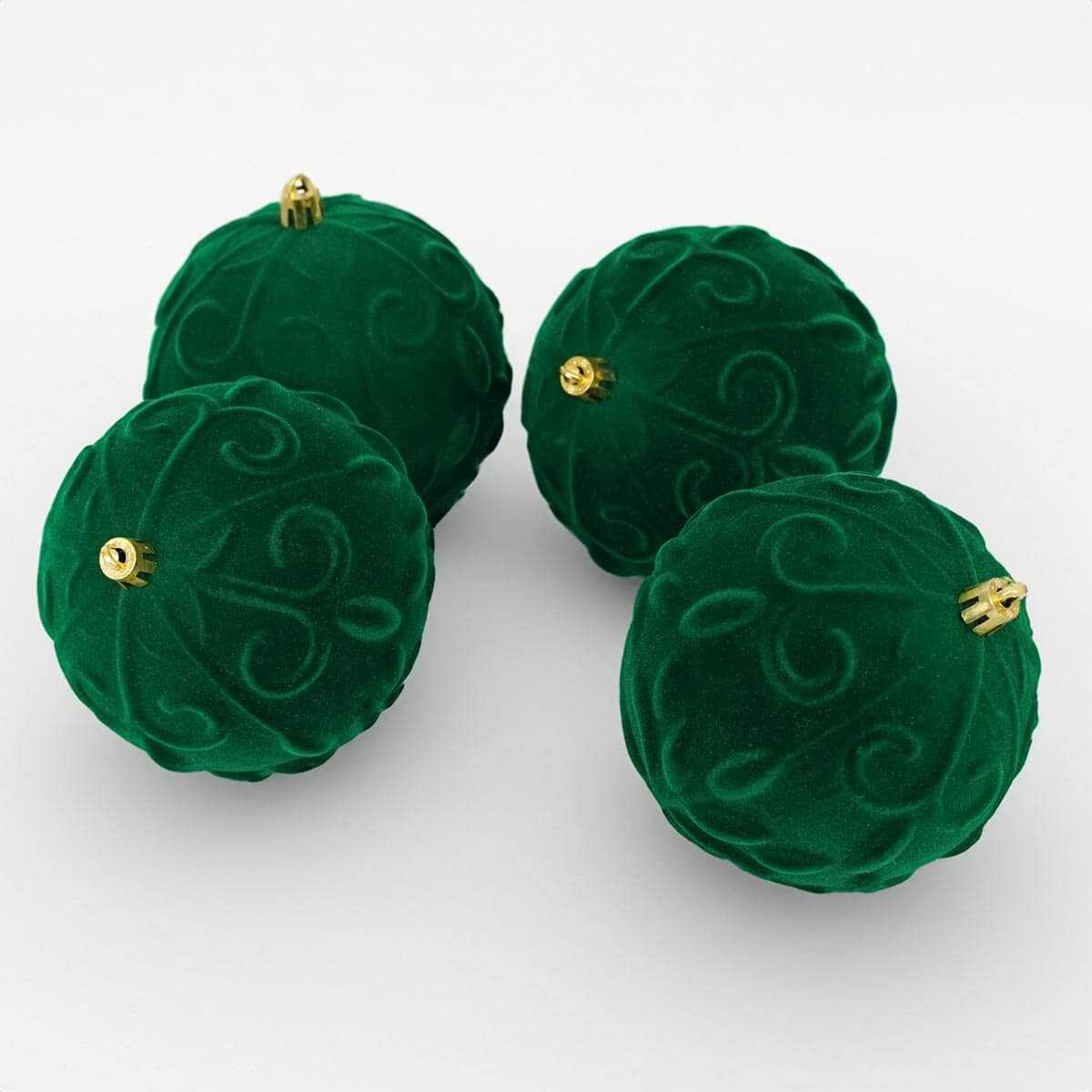 Set Palle Natalizie in Velluto con Decorazioni - 10 cm | Confezione da 4 in Bordeaux, Rosso e Verde