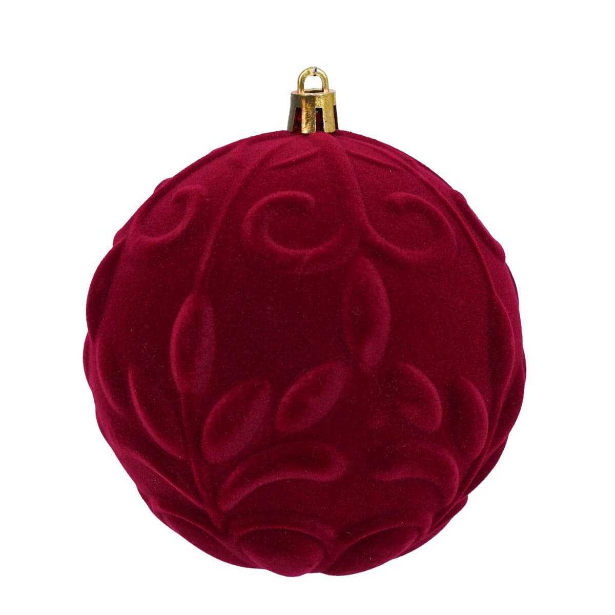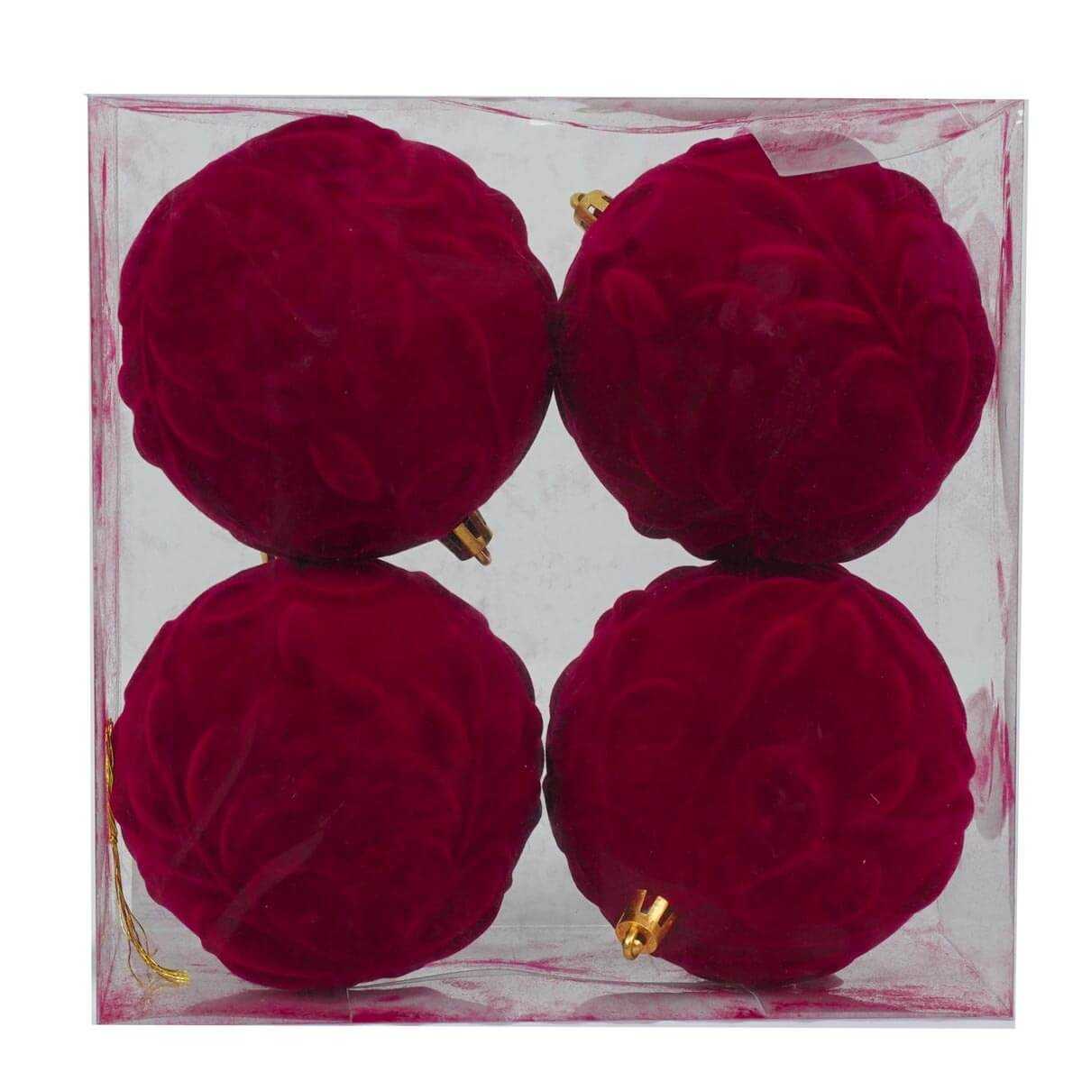 Set Palle Natalizie in Velluto con Decorazioni - 10 cm | Confezione da 4 in Bordeaux, Rosso e Verde