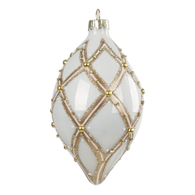 Goccia Natalizia in Vetro Bianco e Oro – Decorazione Elegante da Appendere Ø 8 x H 14,5 cm