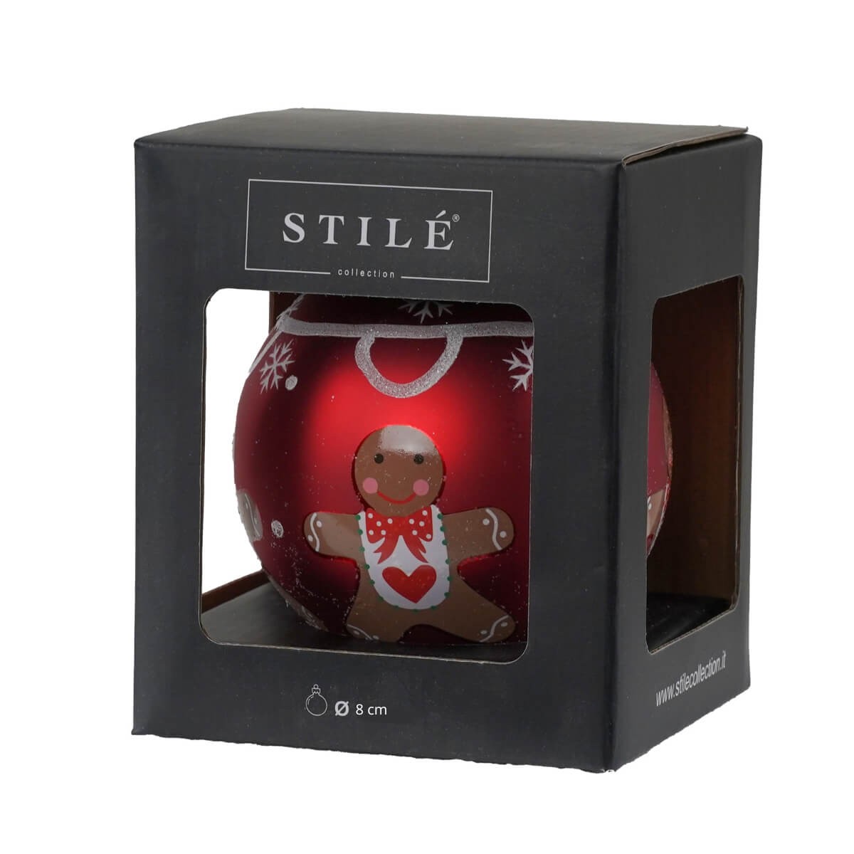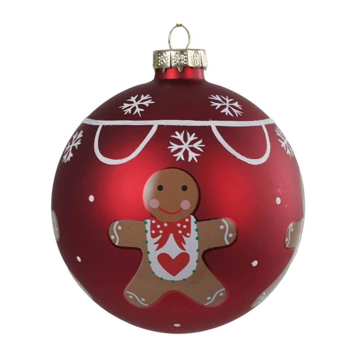 Aggiungi un tocco di allegria e dolcezza al tuo albero con questa elegante palla natalizia decorata in vetro, impreziosita da un adorabile omino pan di zenzero. Il design vivace con fiocchi di neve e dettagli natalizi su fondo rosso satinato rende questa decorazione perfetta per creare un'atmosfera festiva e accogliente. Realizzata in vetro di alta qualità, è disponibile in tre pratici formati per adattarsi a ogni tipo di albero o composizione natalizia:
