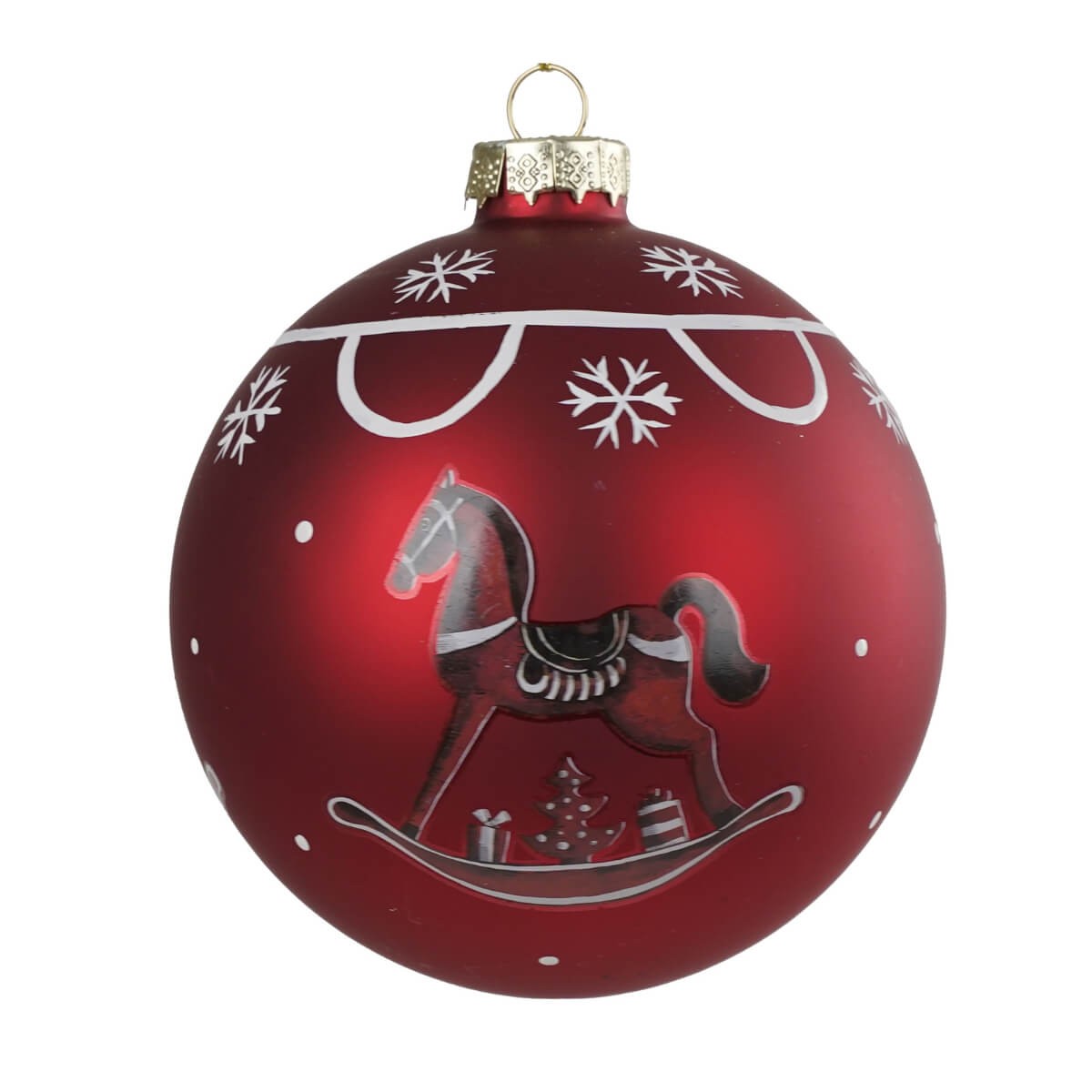 Palla di Natale in vetro con cavalluccio a dondolo – Decorazione natalizia elegante disponibile in 3 misure