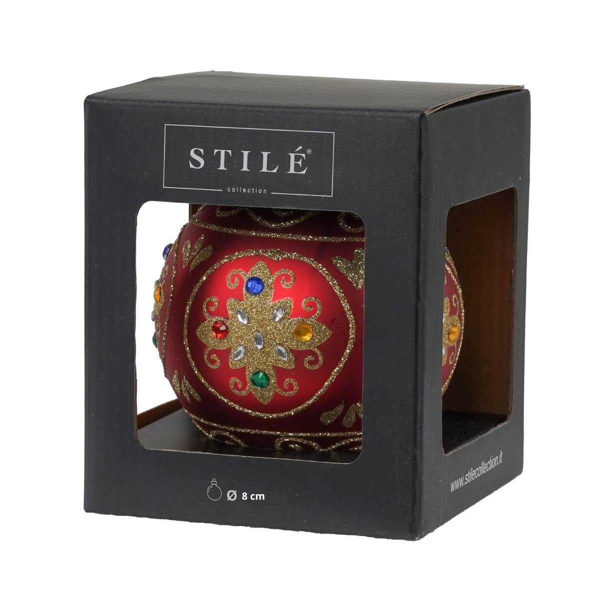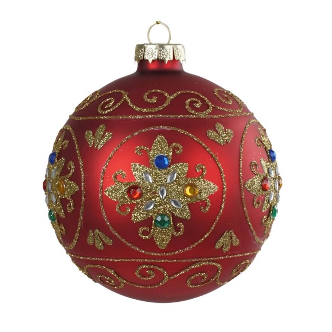 Palla di Natale in Vetro Decorata con Motivo Gioiello – 3 Misure