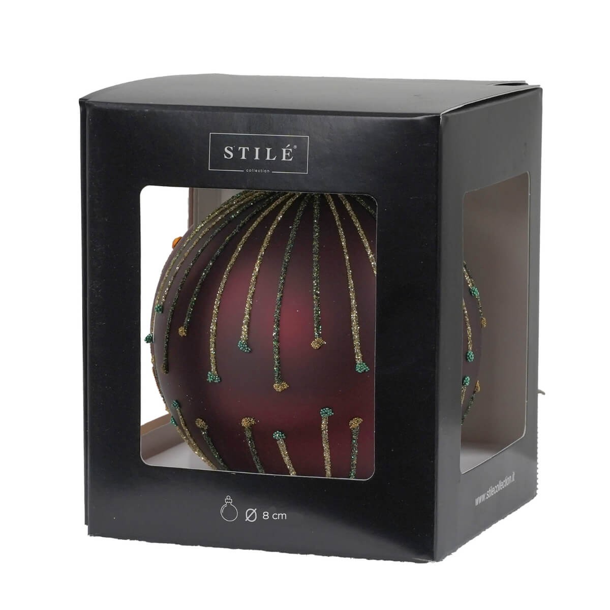 Ogni pallina viene consegnata in confezione singola con scatola nera finestrata STILÉ, ideale anche come regalo raffinato.